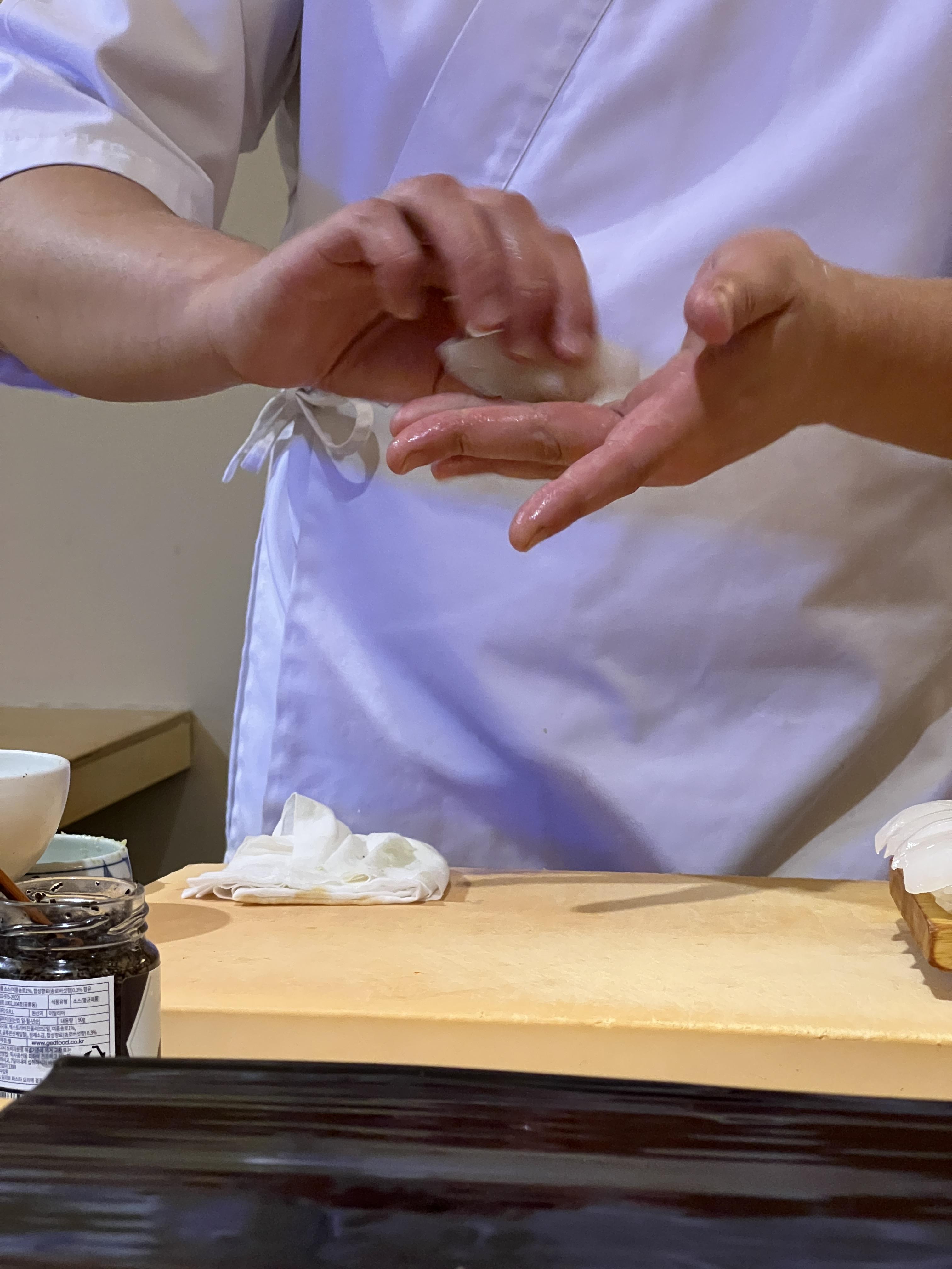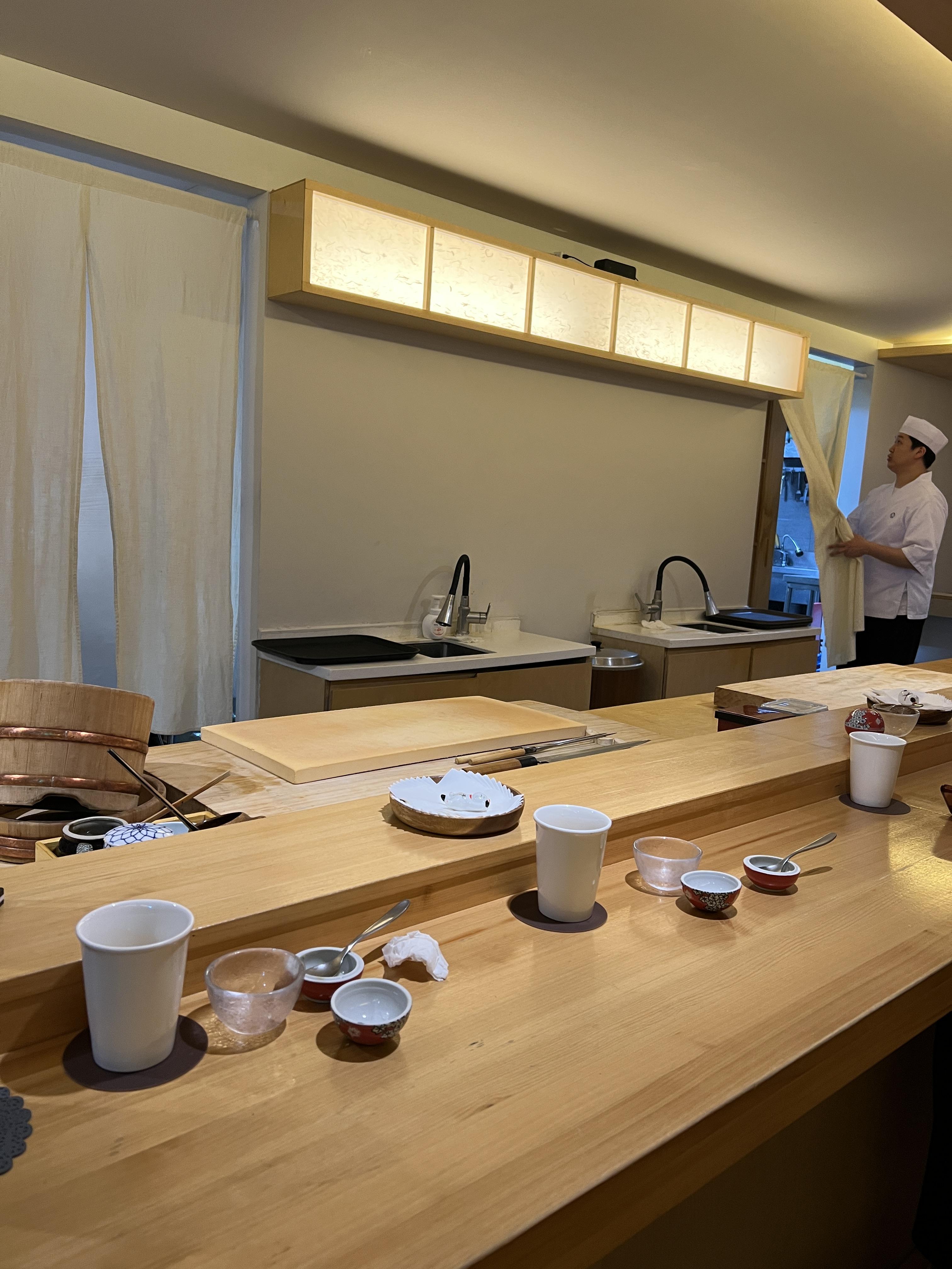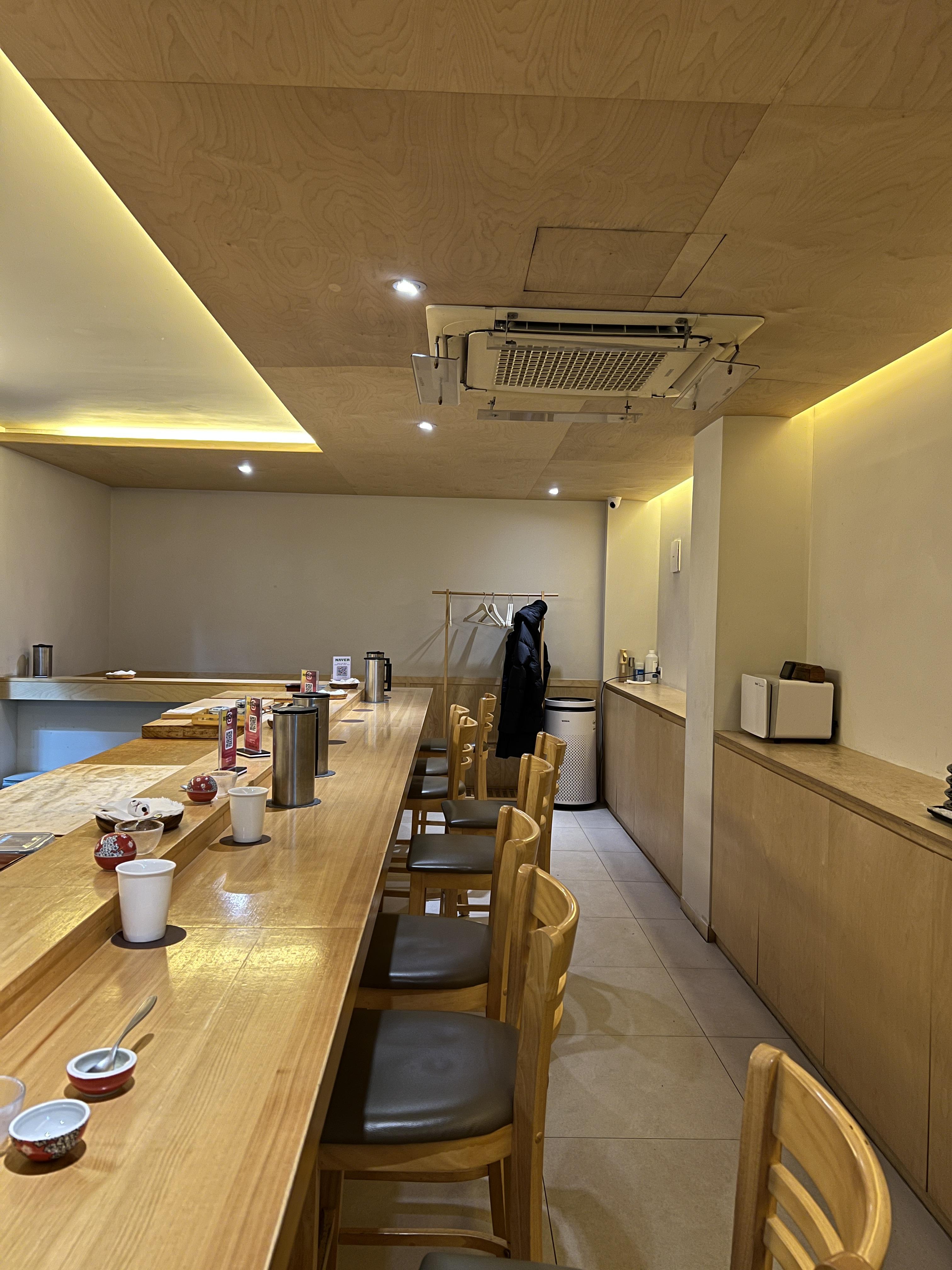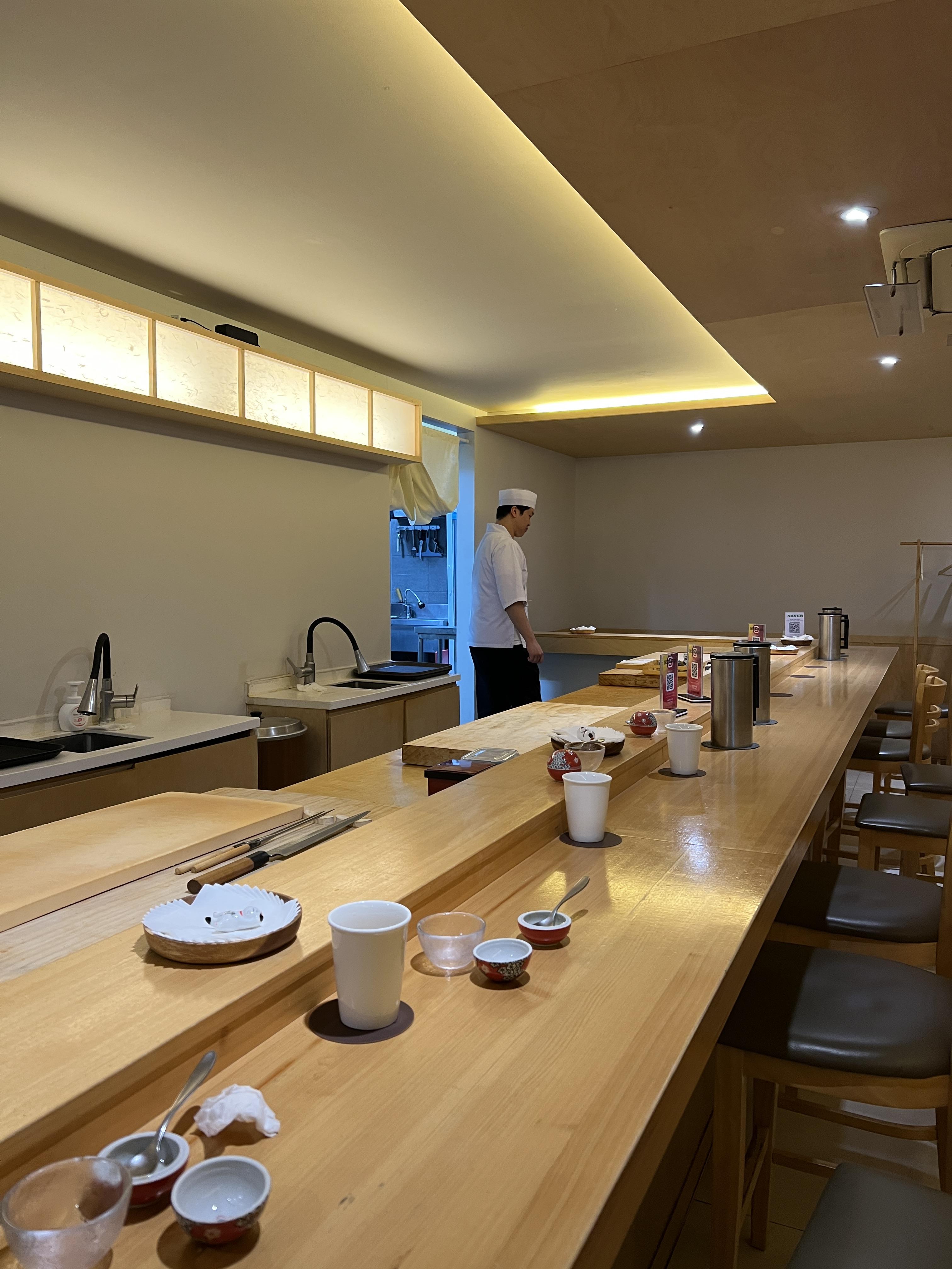 전체적으로 그냥 다찌에 쭉 둘러서 앉아서 먹는 형태이고, 한번에 약 12명, 셰프 두분이서 서빙을 해주신다.