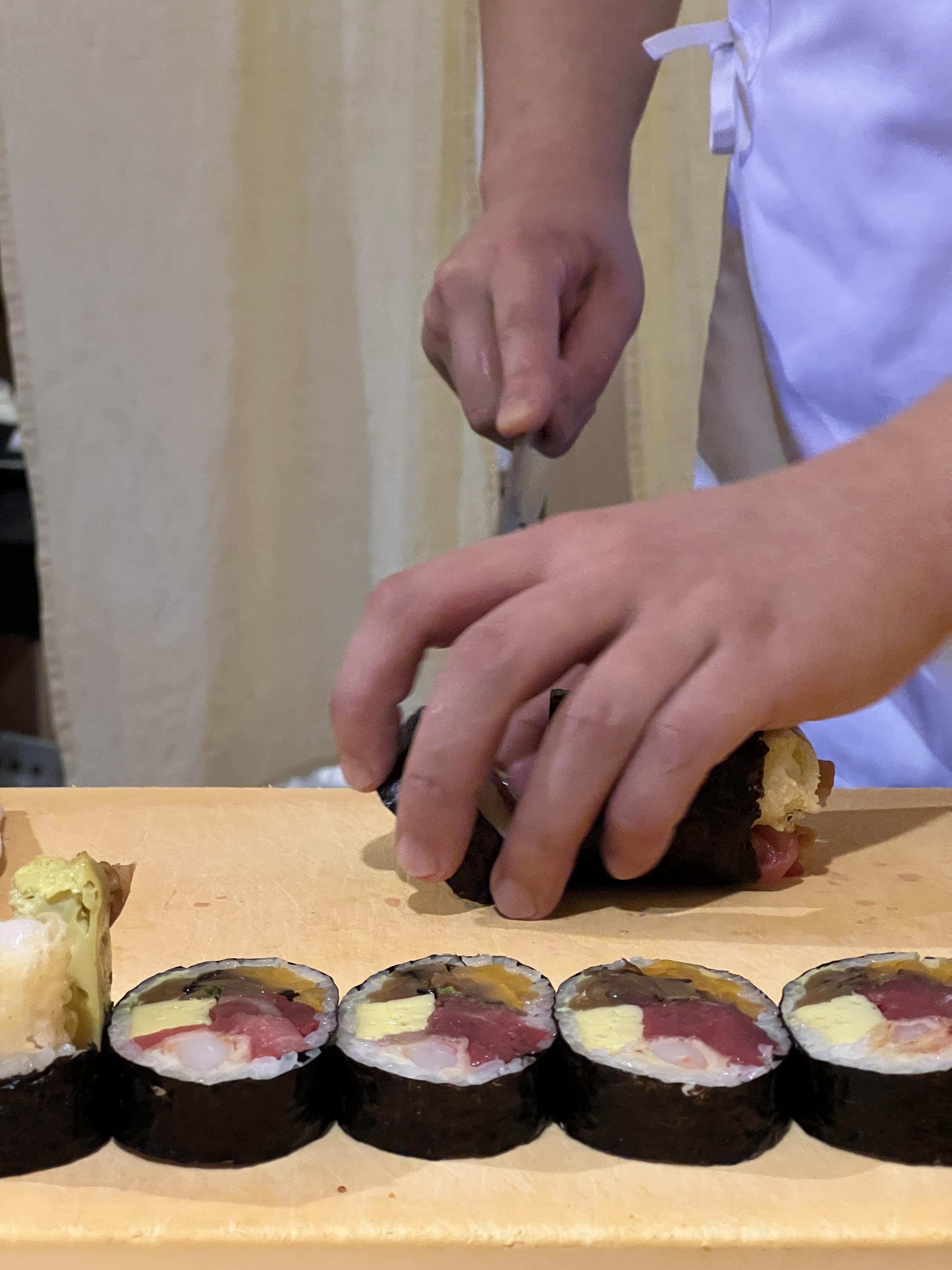 전체적으로 그냥 다찌에 쭉 둘러서 앉아서 먹는 형태이고, 한번에 약 12명, 셰프 두분이서 서빙을 해주신다.