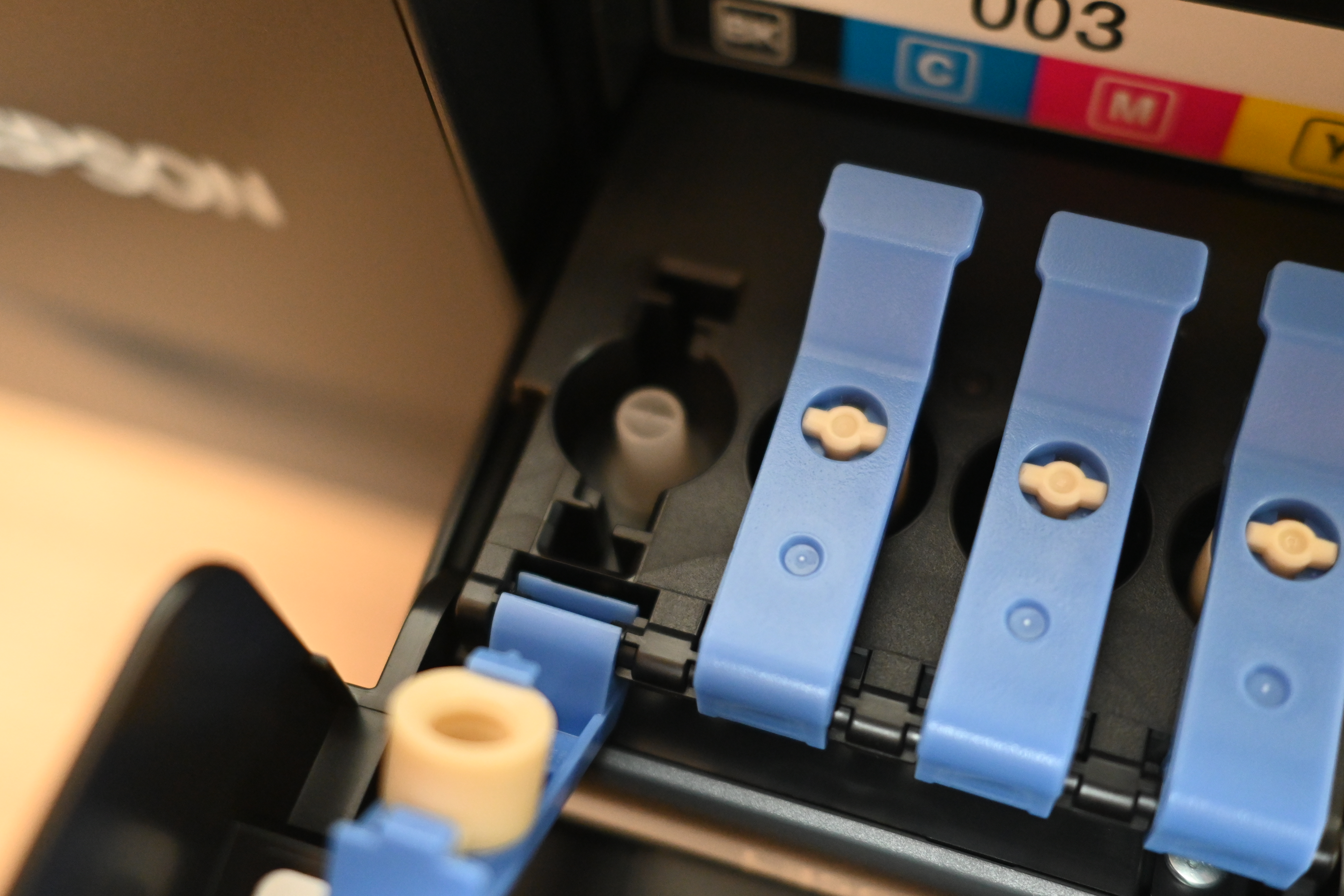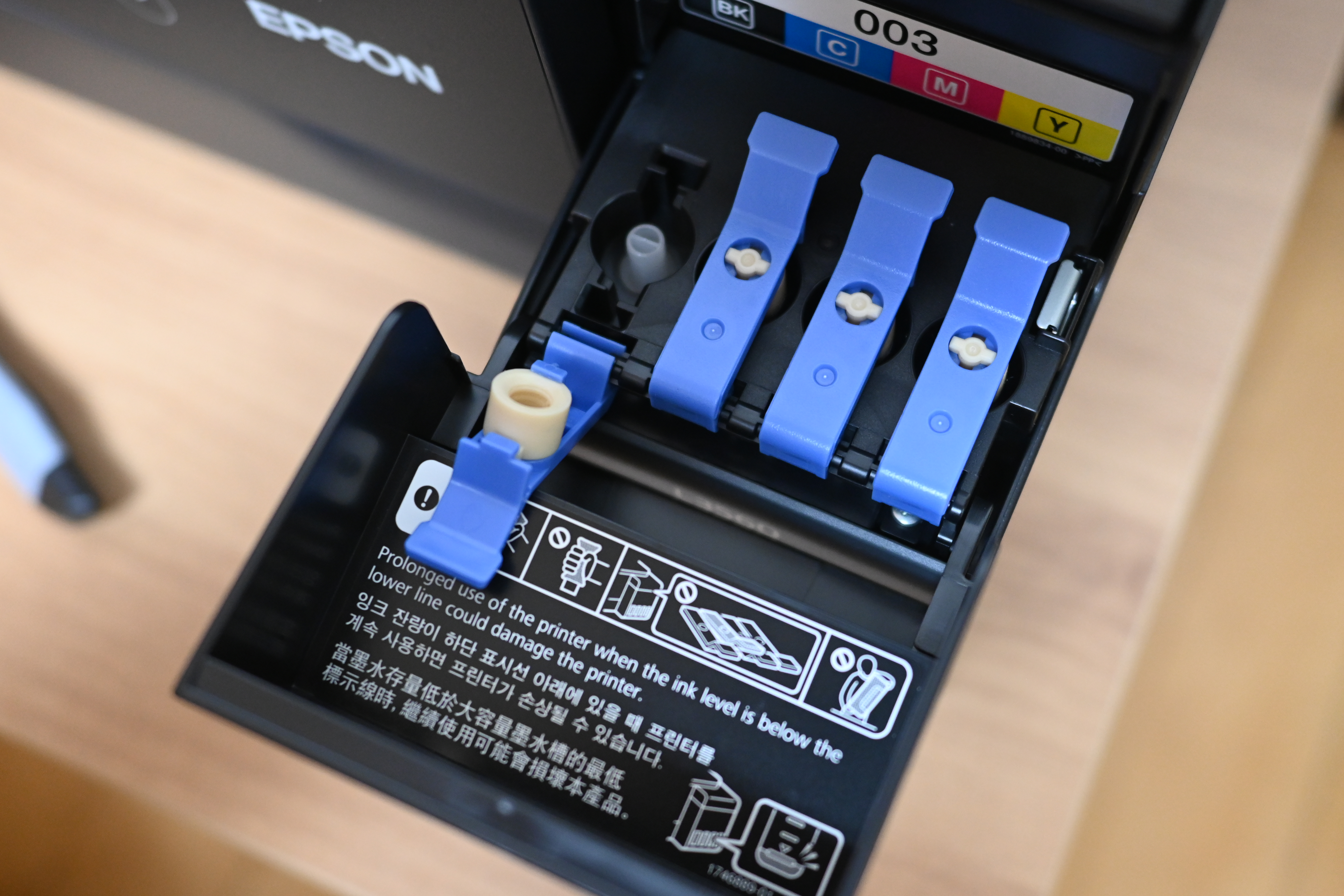 특히 엡손 제품의 경우 잉크 리필을 편하게 할 수 있도록 독특한 형태로 잉크통을 만들어 두었는데,