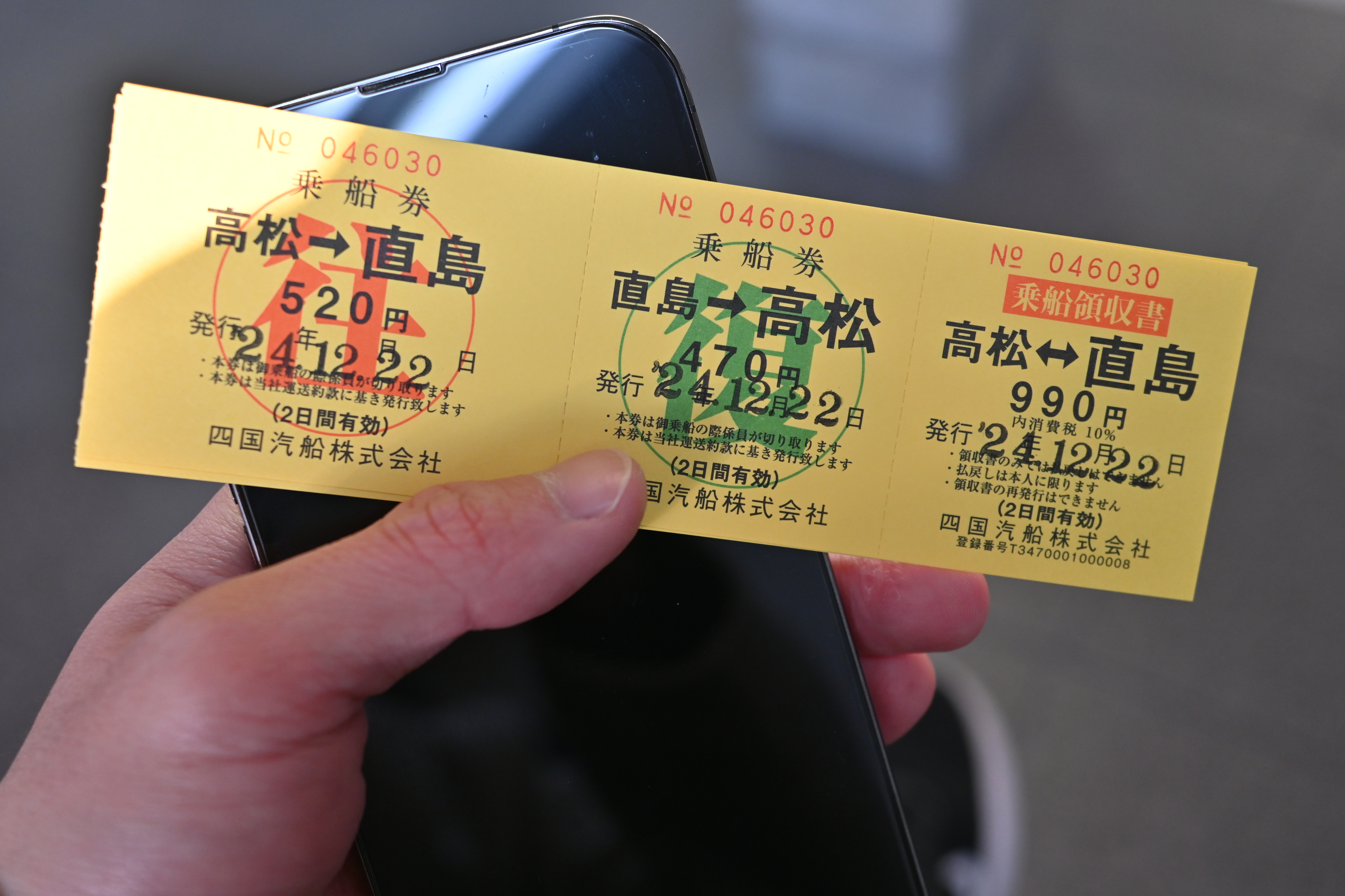 다카마쓰항에서 나오시마섬까지는 왕복 990엔이다.