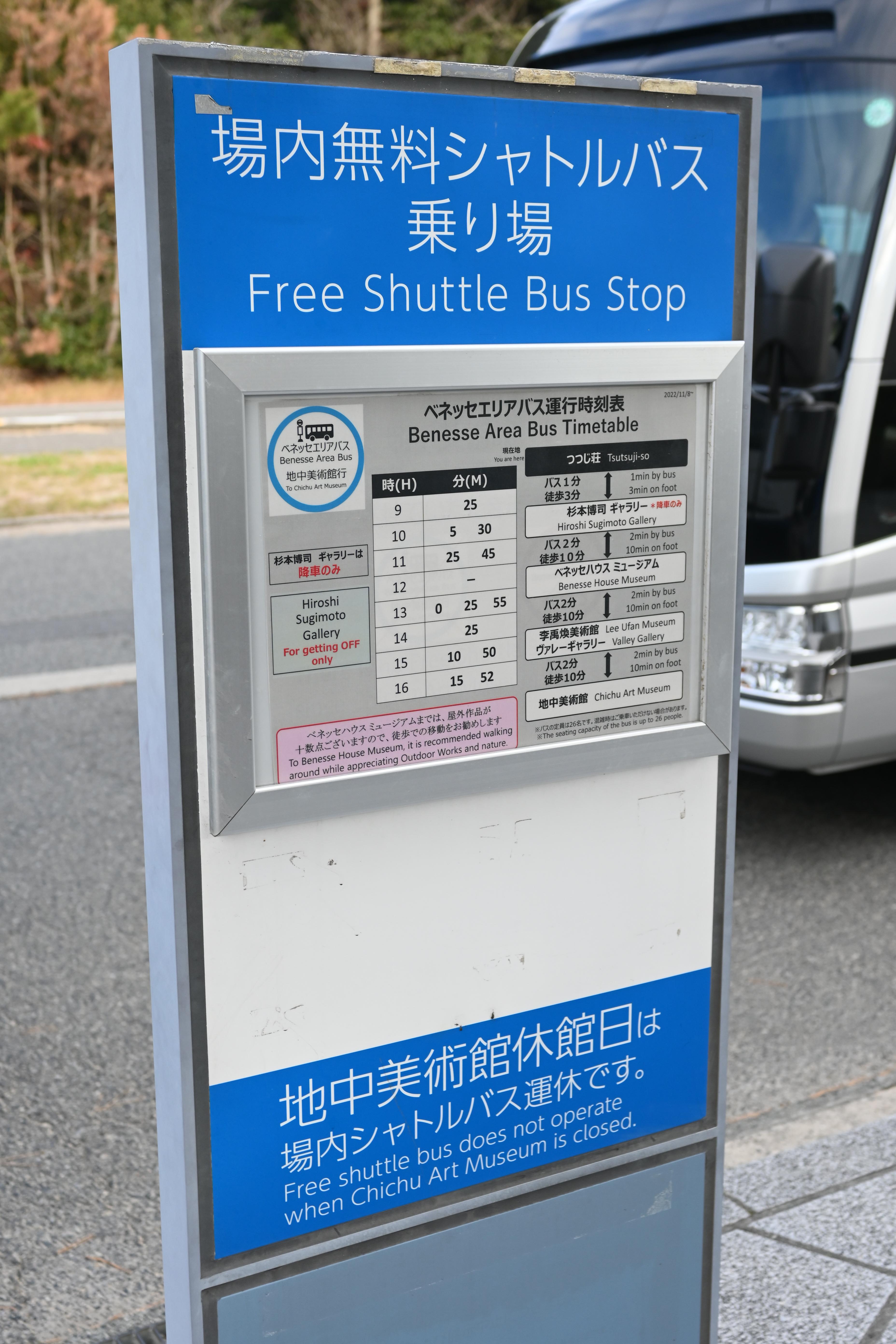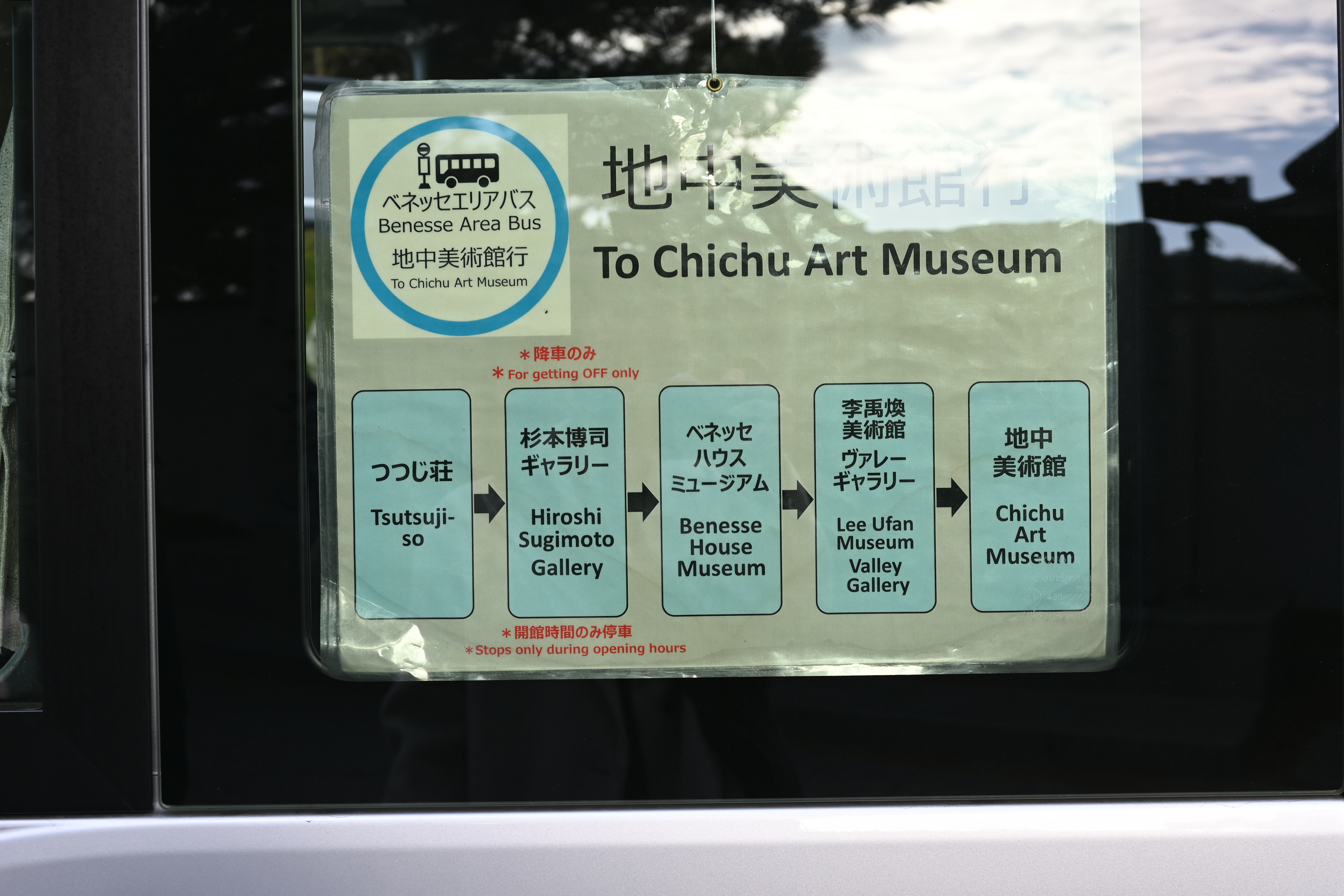 나는 일단 지중미술관을 오전 10시 오픈 시간으로 예약을 했기 때문에 지중미술관으로 바로 이동을 해야 하는데, 지중미술관으로 가기 위해서는 이 100엔 버스를 타고 '츠츠지소'라는 곳까지 한번에 이동한 뒤에, 그곳에서 미술관들을 데려다주는 무료 셔틀로 갈아타야 한다. 처음에는 좀 복잡한데 막상 사람들 따라다니면 어렵지는 않다.