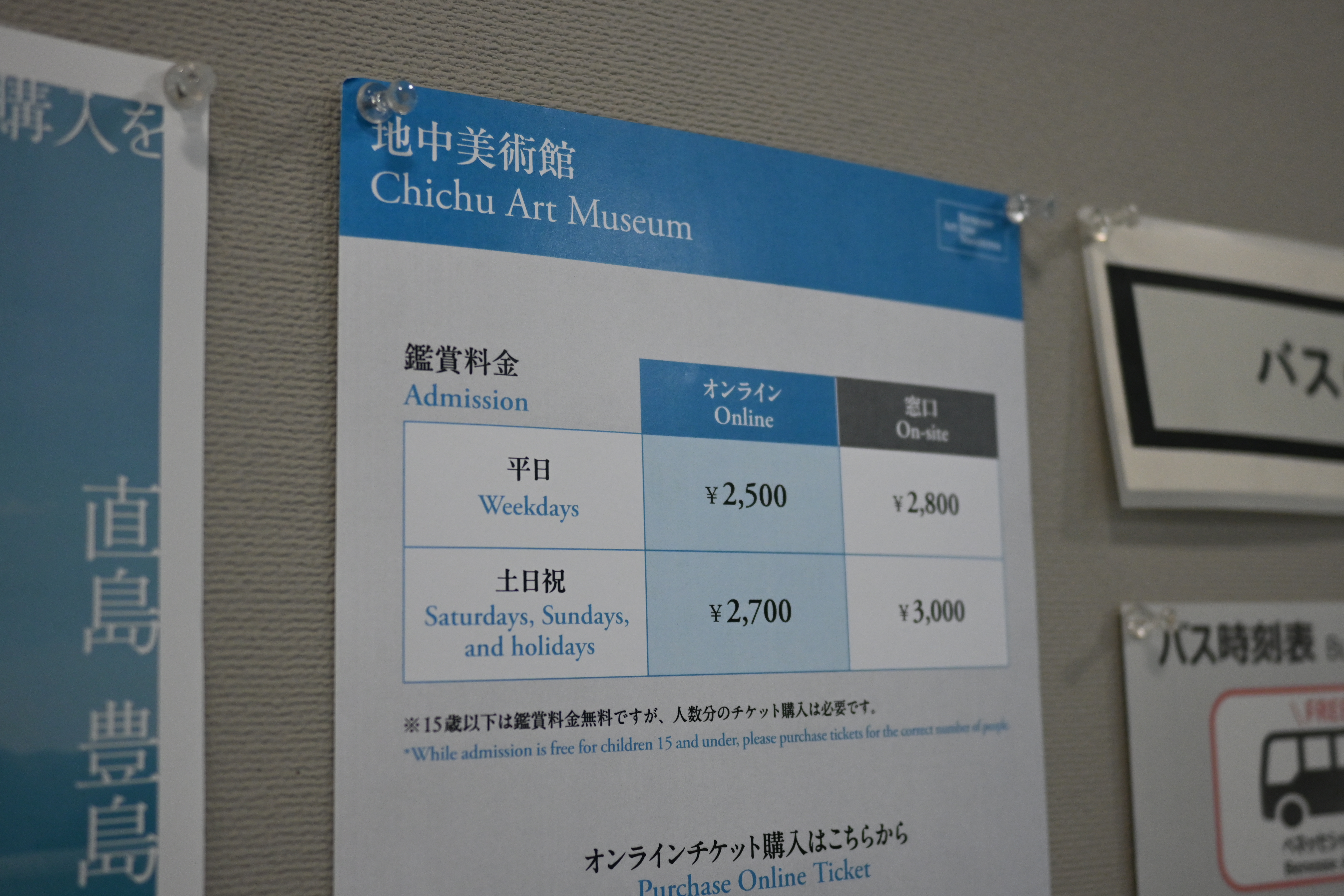 지중미술관 입장료는 성인 2700엔으로 꽤 비싼편. 그래도 나오시마섬에 왔다면 이 지중미술관은 무조건 필수로 봐야 한다. 이우환미술관이나 베네세하우스뮤지엄을 포기하더라도 여기는 무조건 봐야 하고, 개인적으로는 뭐 나오시마섬을 살면서 또 언제 오겠나 싶으니 온 김에 미술관들은 전부 둘러보는 걸 추천한다.