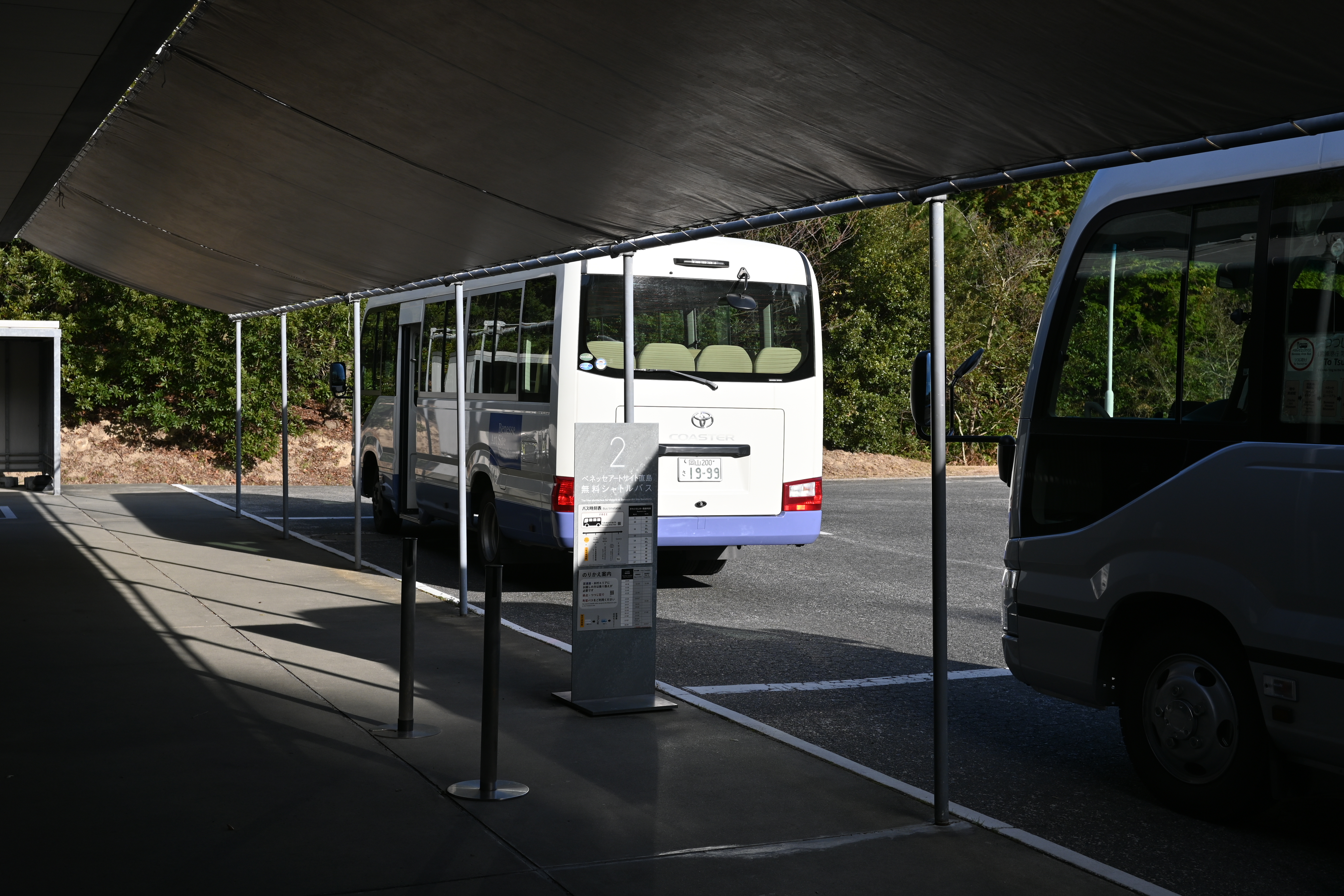 저것도 유명 조형물이니 사진 한번 찍어야 하지만, 일단 나오시마섬에 도착하면 저건 나중에 나갈 때 봐도 되니까 바로 100엔 셔틀버스를 타러 달려가야 한다. 이 100엔 셔틀버스를 타야 박물관 셔틀을 탈 수 있는 '츠츠지소'라는 곳으로 갈 수 있는데 이 버스가 워낙 배차간격이 길다보니 배가 도착하자마자 타지 못하면 낭패다.