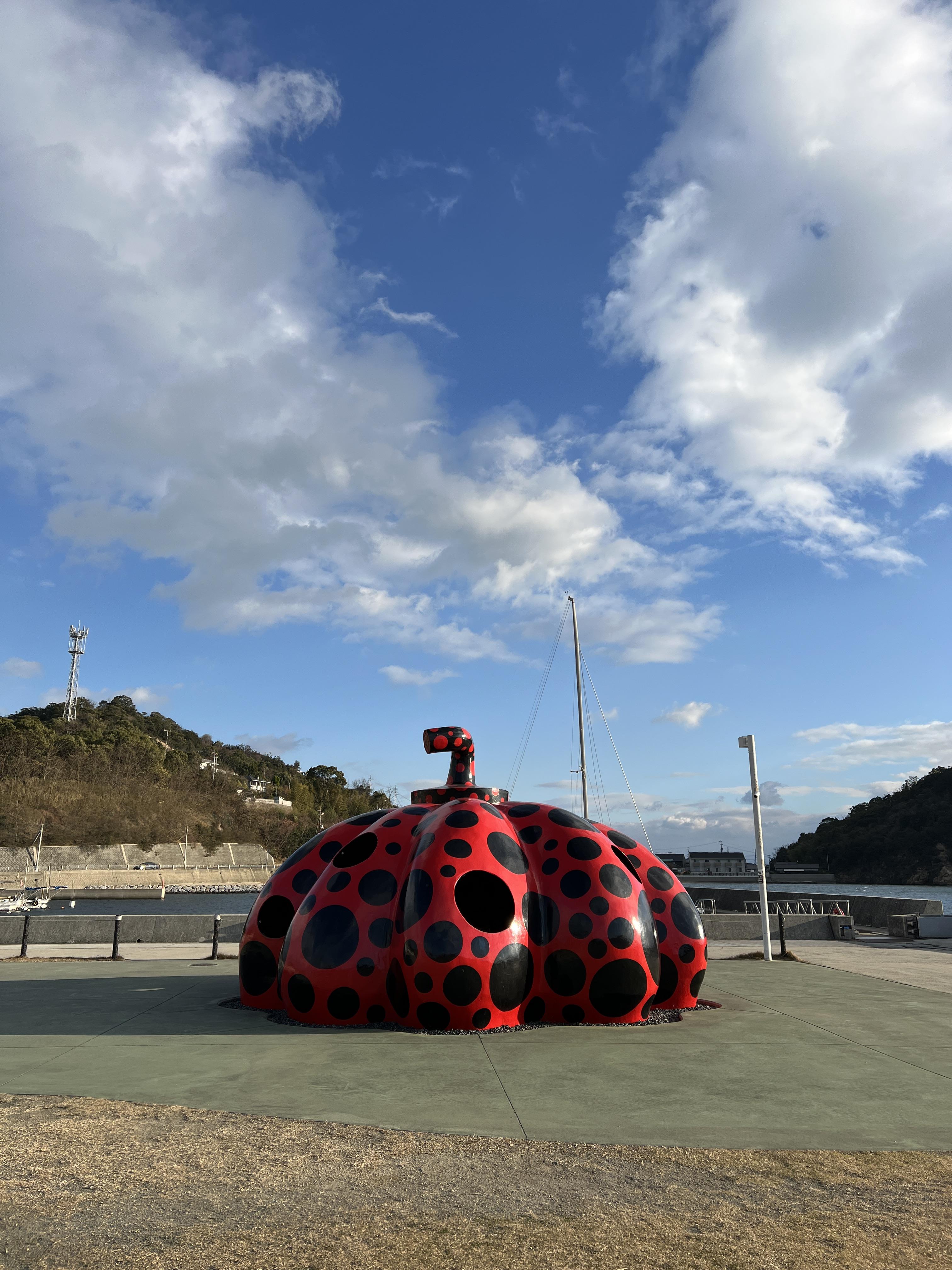 쿠사마 야요이의 빨간호박은 다카마쓰로 나가는 나오시마항 근처에 있으니 접근성이 매우 좋다.