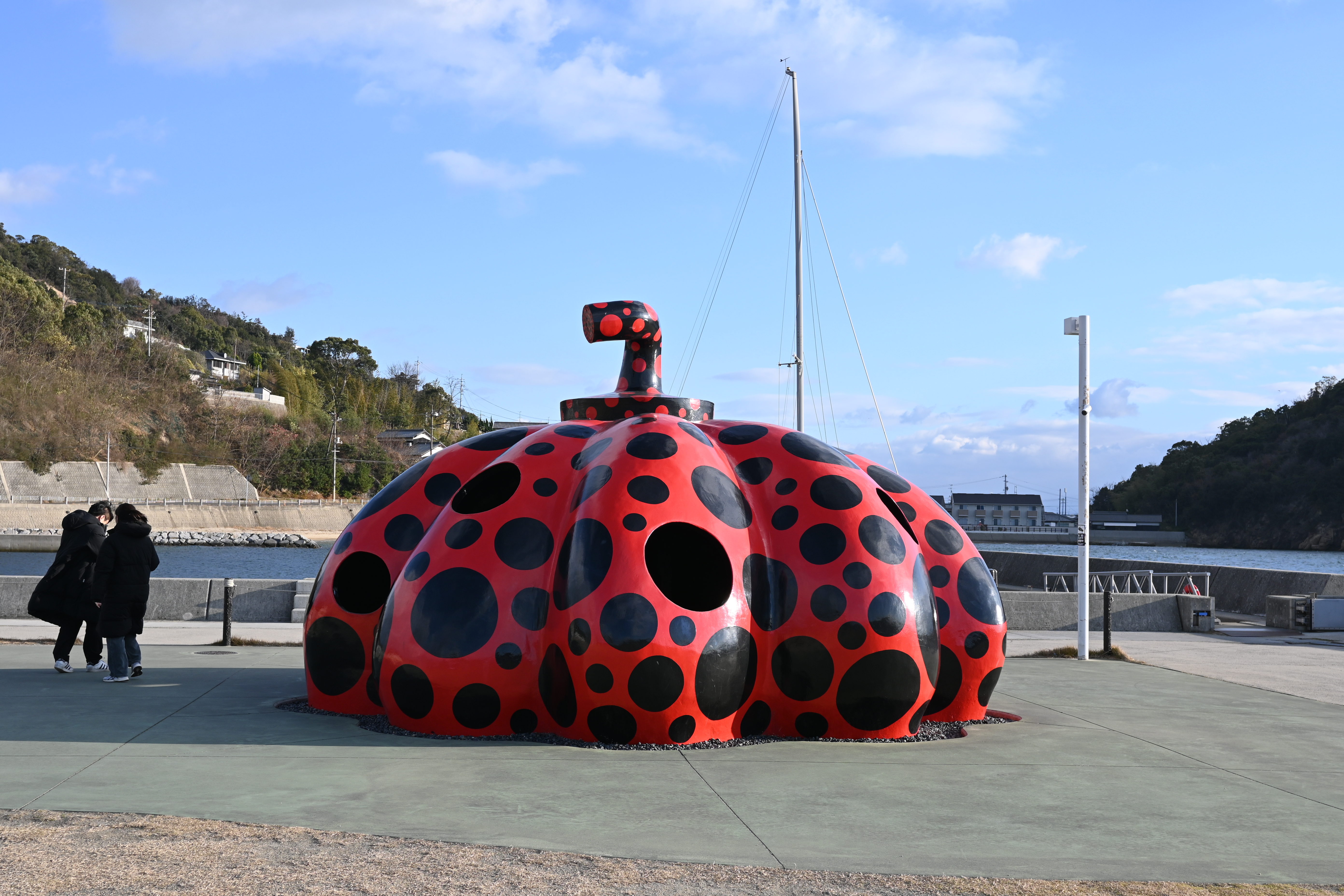 쿠사마 야요이의 빨간호박은 다카마쓰로 나가는 나오시마항 근처에 있으니 접근성이 매우 좋다.