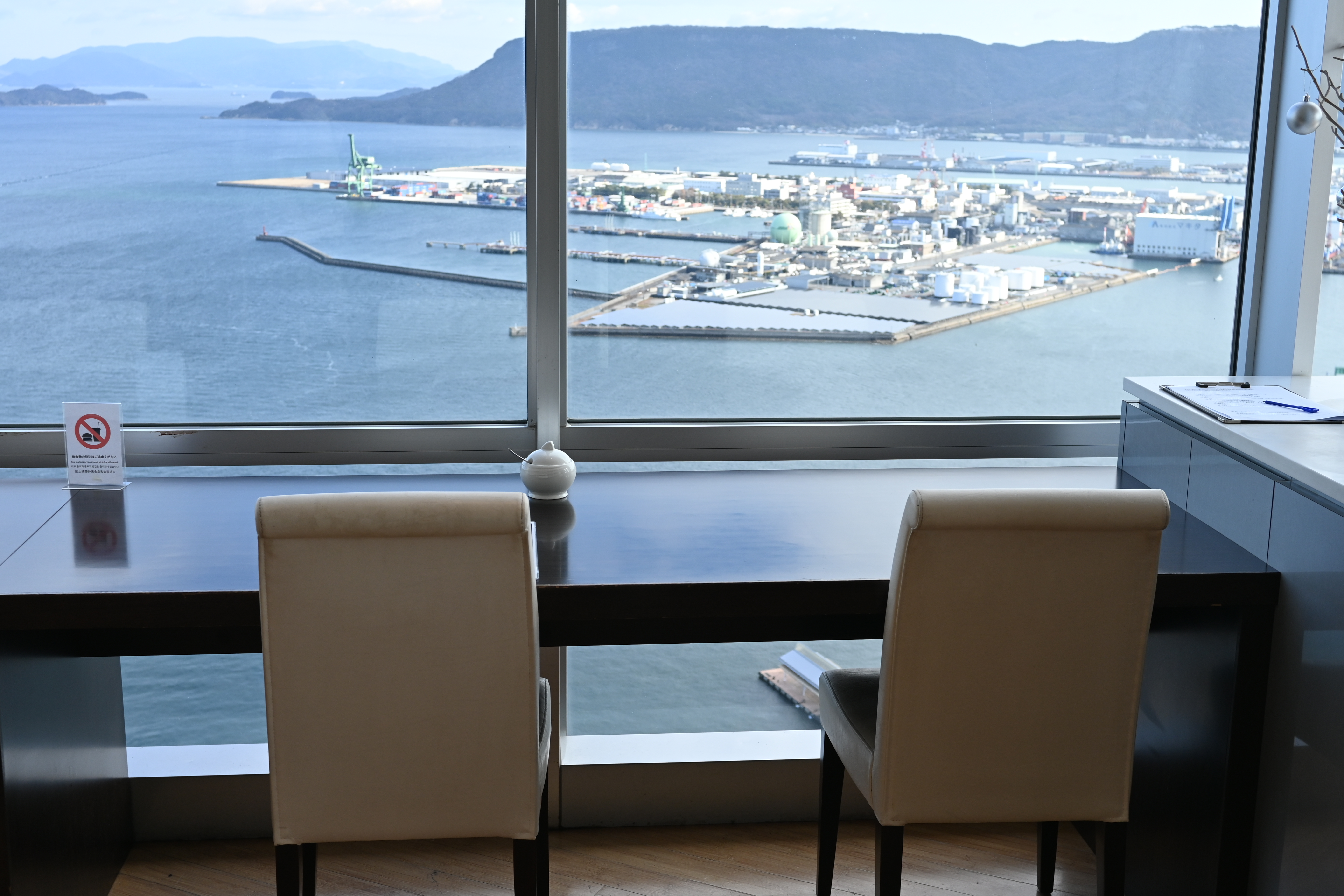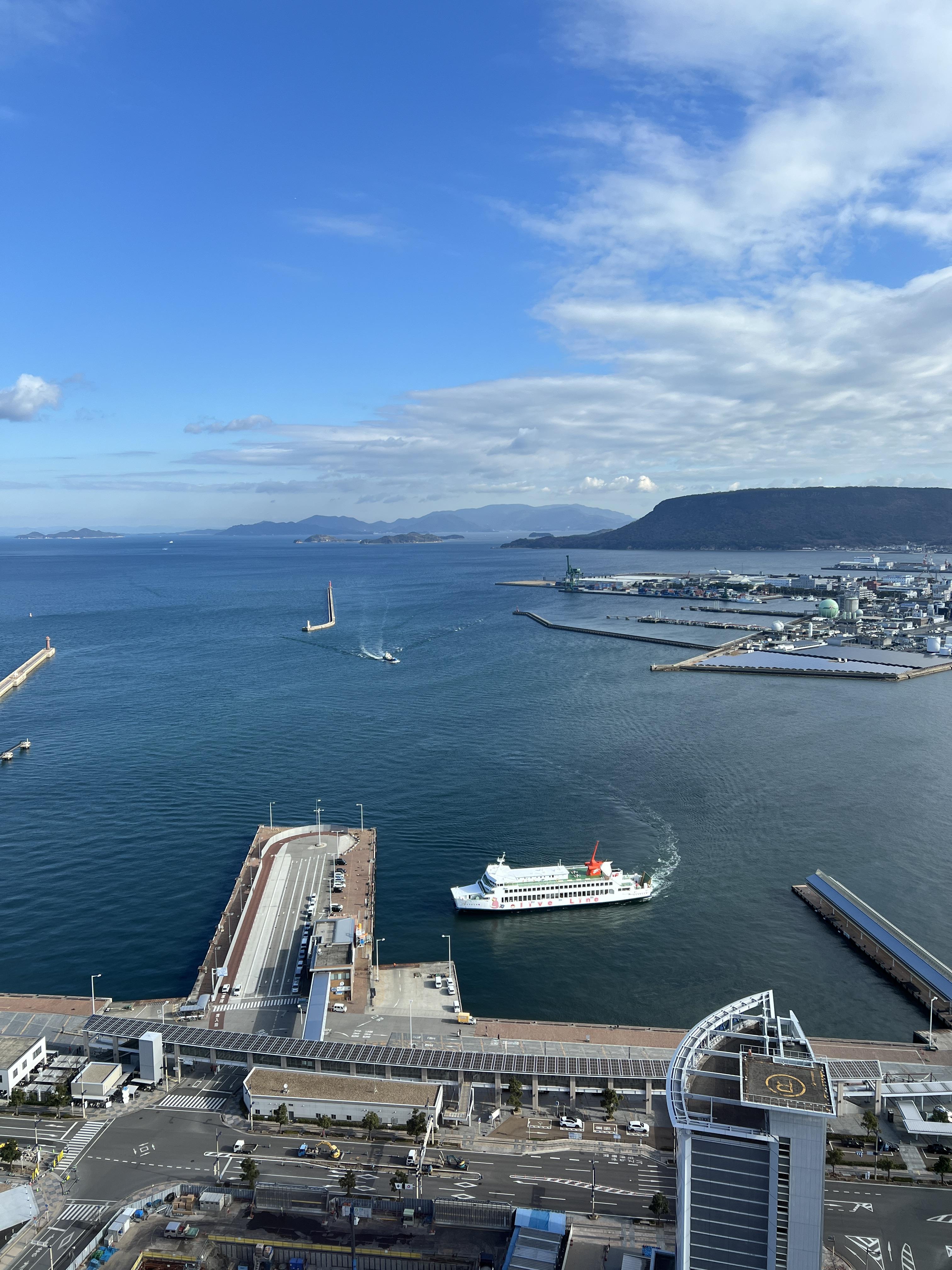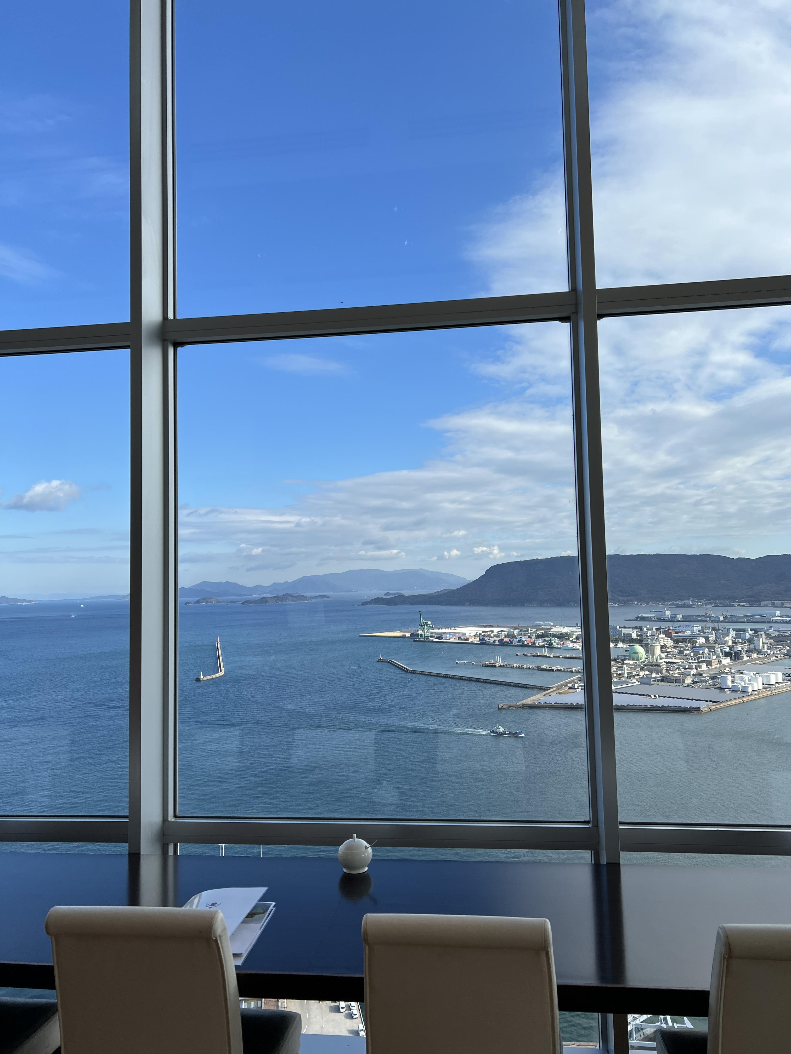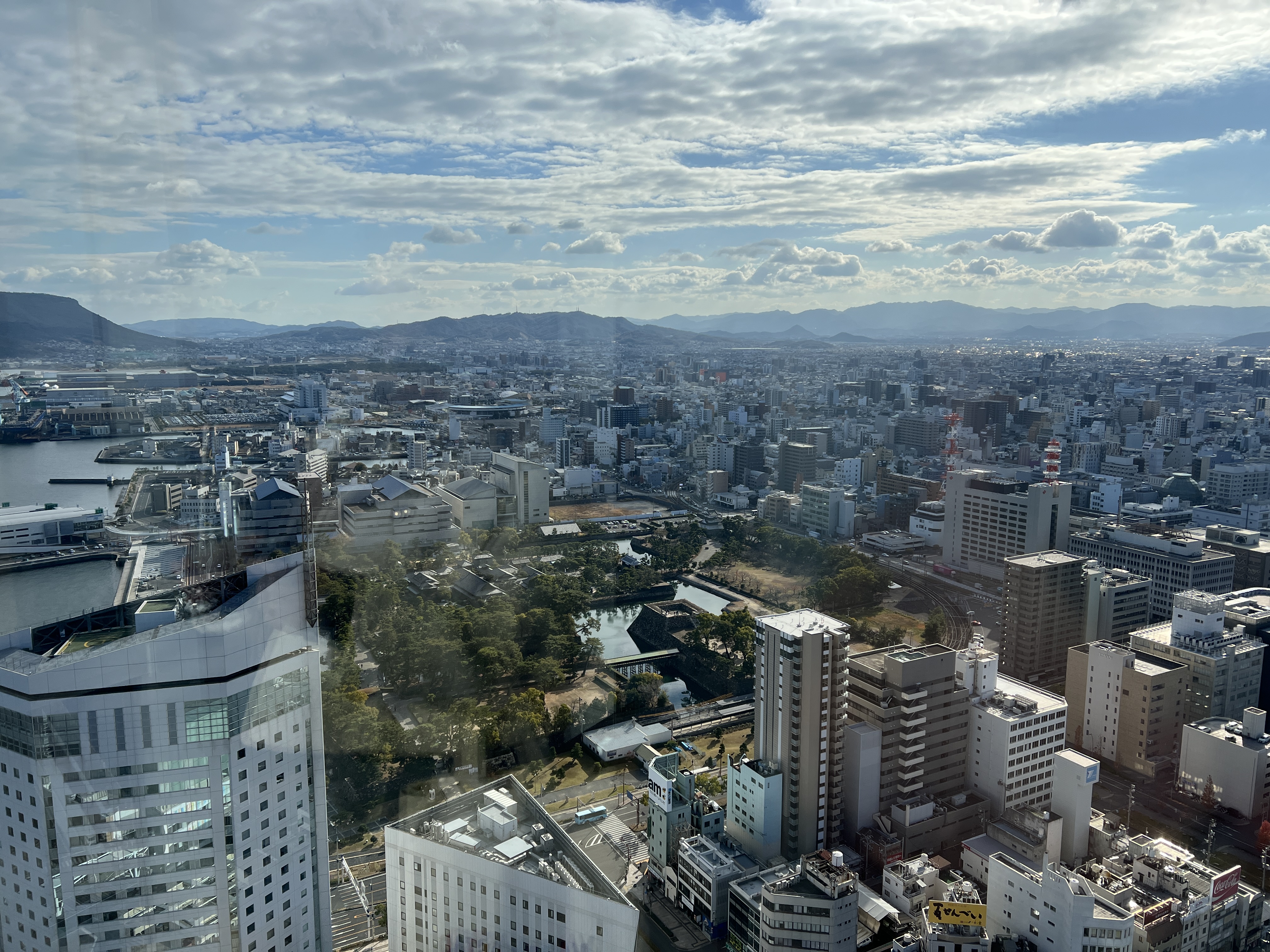 #다카마쓰심볼타워 : 성터를 구경하고 다시 전날 갔던 심볼타워로 이동했는데, 여기 29층에 무료 전망대가 있다. 다카마쓰는 전망대랄 게 딱히 없는데 ’야시마루’라는 곳이 산 위에서 내려다보는 전경이 좋다고 하는데 교통이 너무 불편하니 스킵하면 딱히 올 만한 곳은 여기밖에 없다. 29층에서 운영하는 식당에서 뷰를 훔쳐보는(?) 느낌이기는 한데 하여튼 무료로 이 정도 뷰 잠시 보고 가는 정도라고 생각하면 괜찮다.