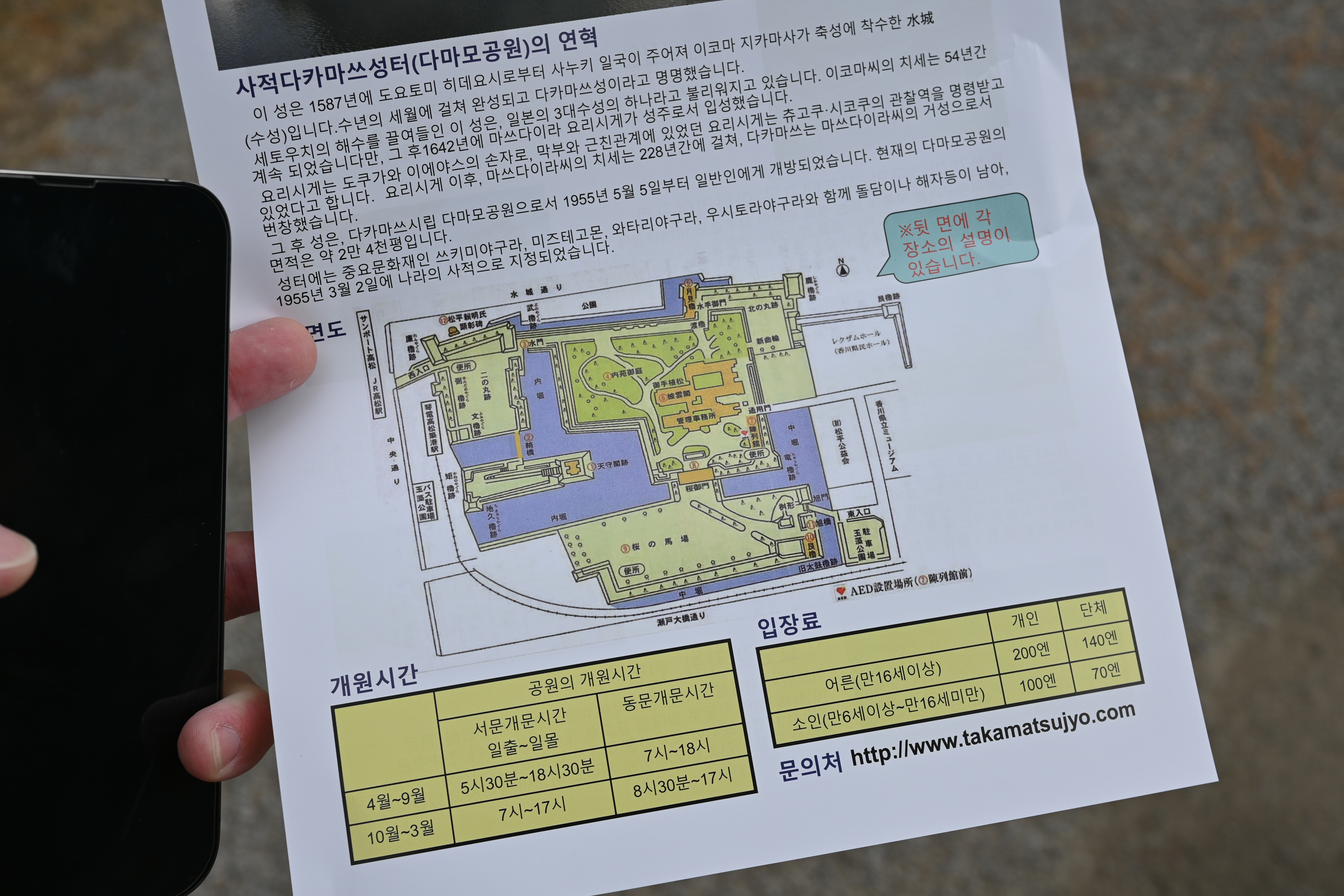 일단 다카마쓰 성터로 이동해서 구경하고 전망대로 이동. 순서는 반대로 해도 상관 없다.