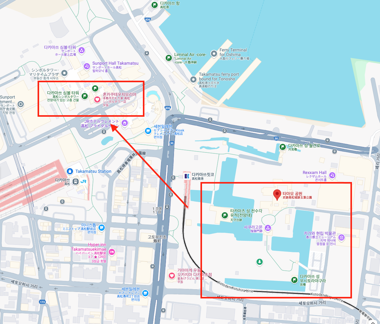 일단 다카마쓰 성터로 이동해서 구경하고 전망대로 이동. 순서는 반대로 해도 상관 없다.