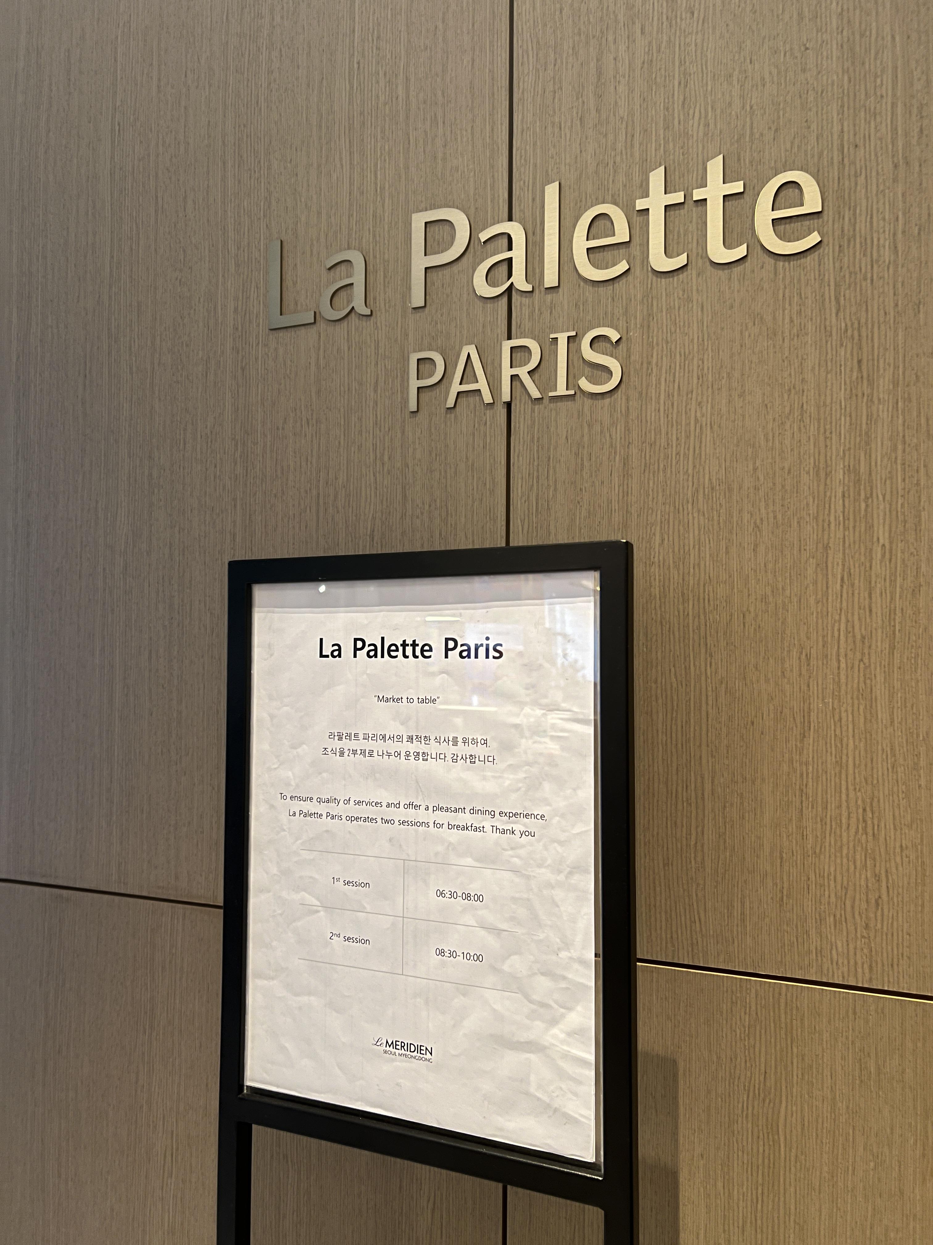 아, 참고로 메리어트 본보이 더베스트 카드로 르메르디앙에서 발렛주차를 무료로 이용할 수 있기 때문에 발렛까지 맡기고 들어가도 되고, 아니면 그냥 라팔레트 입장하면서 입구에서 주차 도장을 받아서 차 받을 때 제시하면 무료로 발렛을 이용할 수 있다.