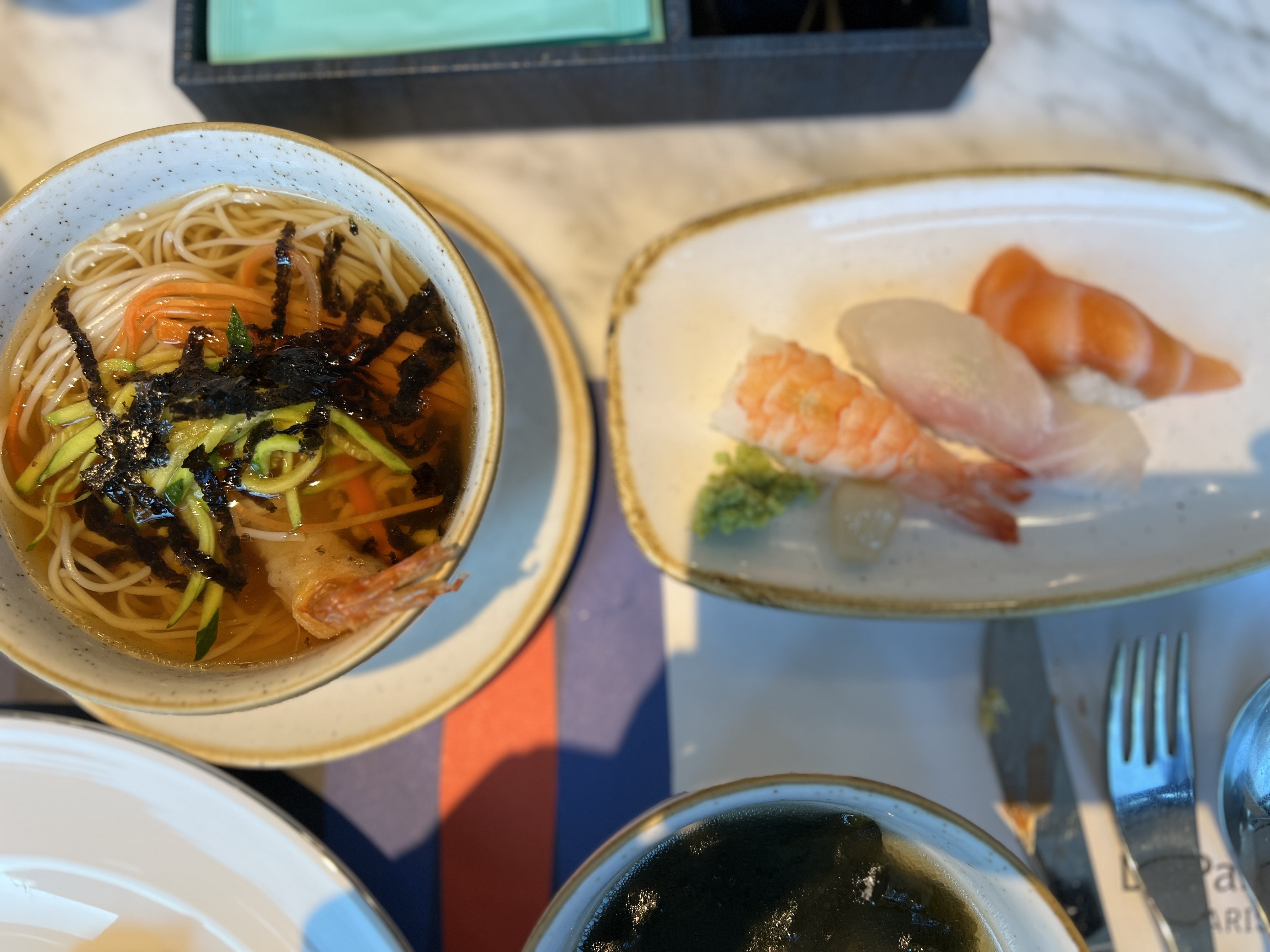 뭐 농어, 연어, 새우 정도로 비싼 스시가 나오는 건 아니지만 그래도 조식에 스시가 나온다는 건 여기만의 특권이다.