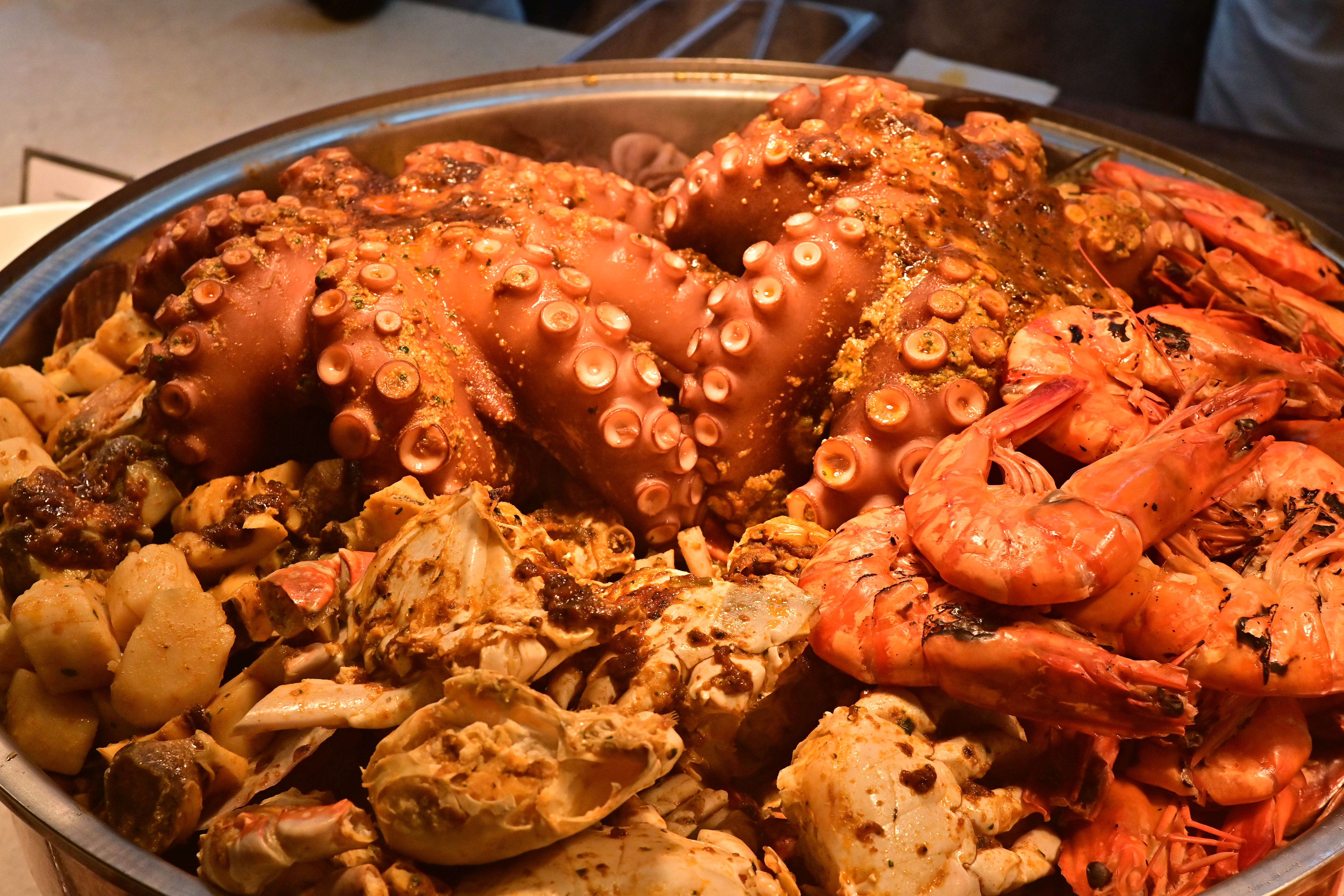 나는 호텔 뷔페에 오면 거의 딱 두 가지 메뉴만 조진다. 양갈비와 대게. 심지어 여기 그랜드 파르나스에는 '홍게'가 아니라 진짜 '대게'가 있다. 홍게보다 대게가 비싼 건 당연한데 대게가 있을 줄이야. 여기서는 다른 거 필요없고 대게만 먹어도 본전이다.
