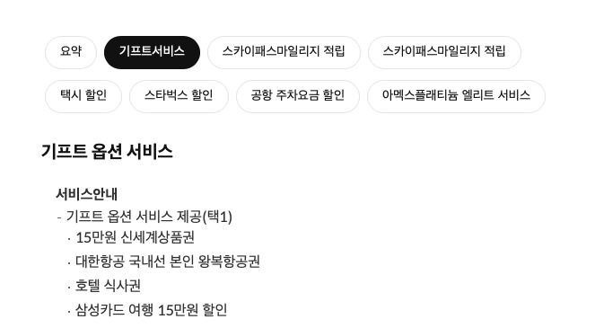 그래도 1년에 한번씩 2인 호텔 뷔페로 기분 내고 싶으신 분들한테는 마지막으로 남은 선택지이니 고려해보시는 걸 추천한다. 특히 이런 연회비 20만원 이상 프리미엄 카드들은 아멕스 혜택을 별도로 누릴 수도 있으니 이래저래 혜택으로 뽑아낼 수 있는 것들이 꽤 된다.