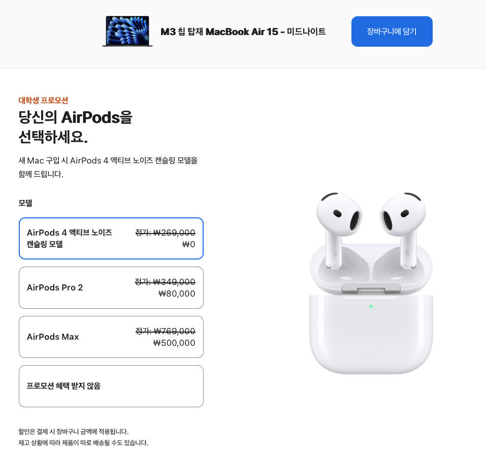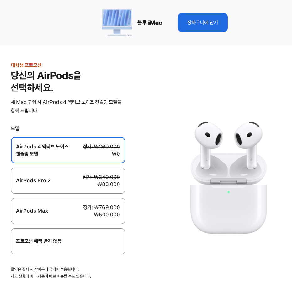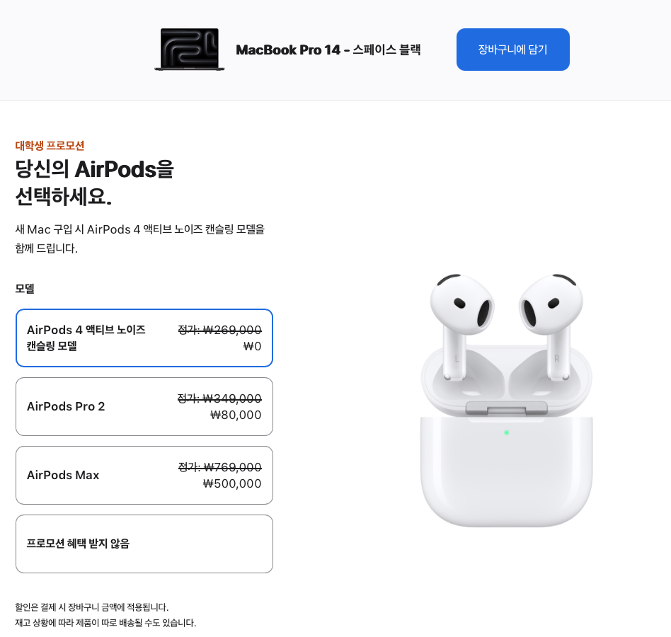 안녕 파카씨다. 2025. 1. 8. 오늘부터 애플 신학기 프로모션이 시작되었다.