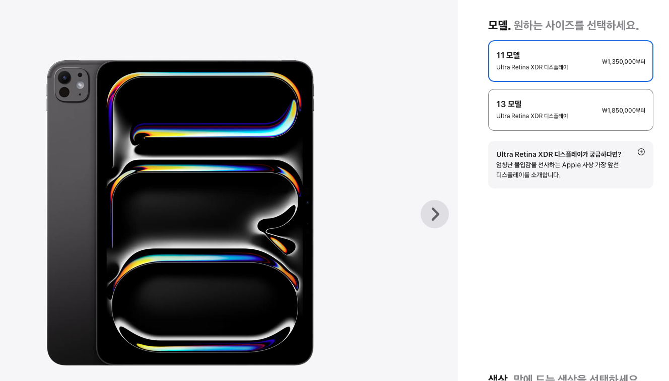 나중에 결제하는 화면으로 들어가면 18만원이 할인된 가격으로 구매할 수 있다. 그러니 당연히 애플펜슬 프로를 선택할 것.
