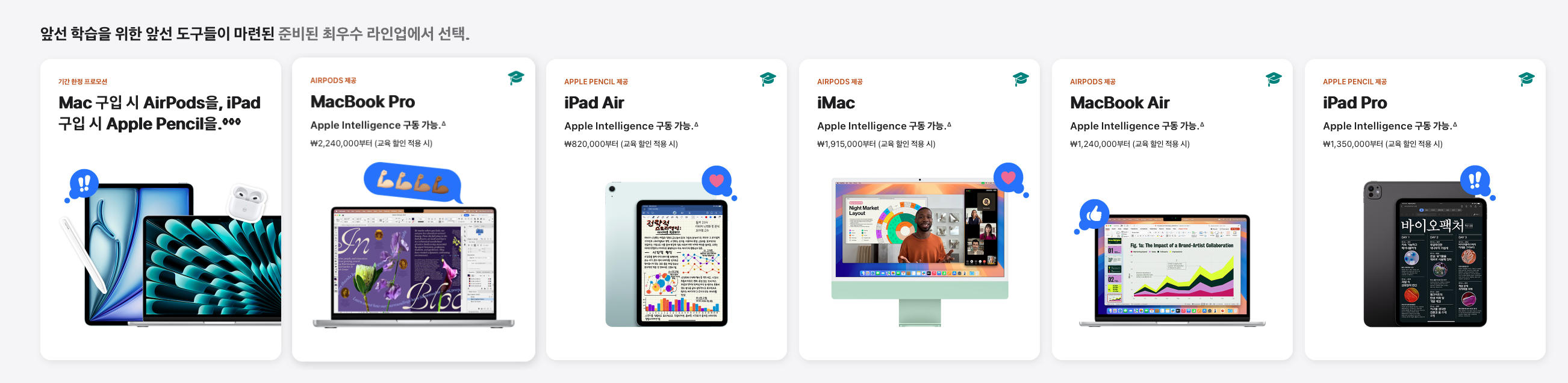 애플 신학기 프로모션은 평소에 하는 학생할인 혜택에 더해서 제품에 따라 에어팟 또는 애플펜슬을 증정하는 이벤트인데, 학생할인 혜택을 받을 수만 있다면 기왕이면 에어팟까지 공짜로 받으면서 구매하면 매우 개이득인 프로모션이다.