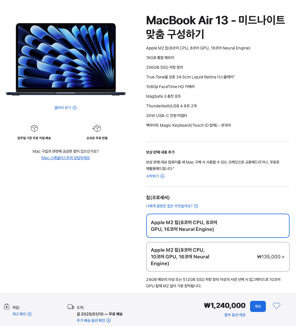 맥북에어 15인치를 구매할 때에도 동일하다.