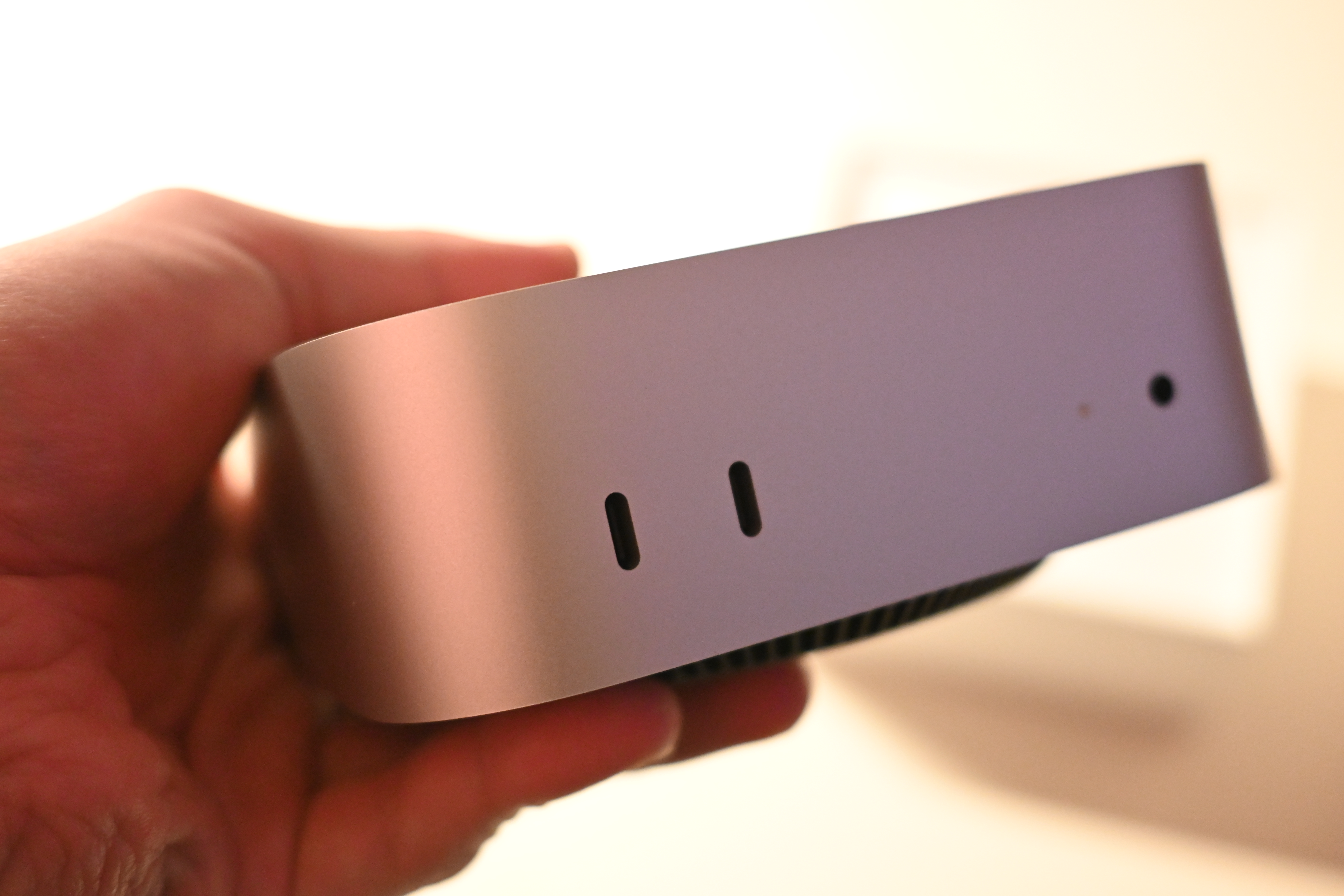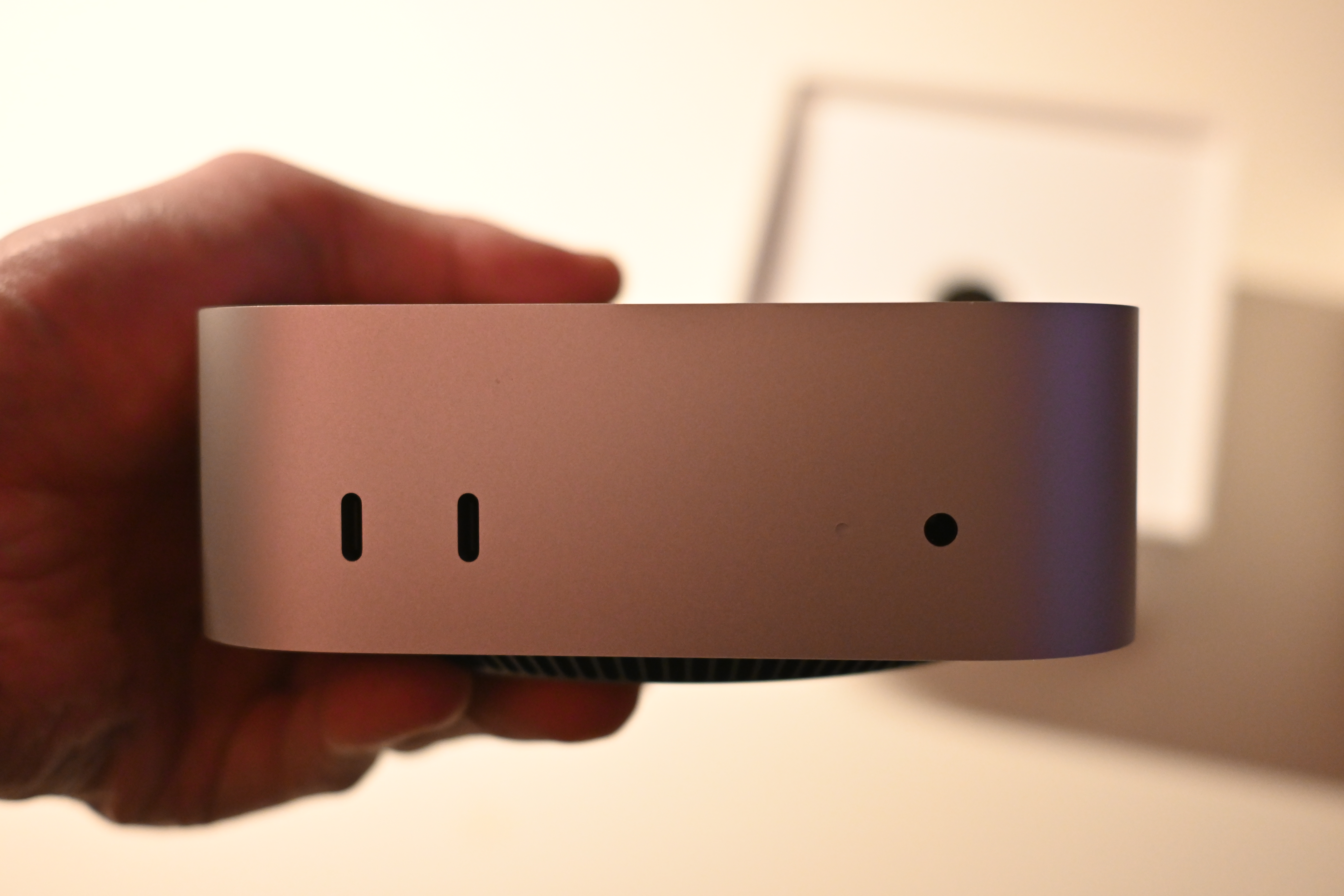 일단 폼펙터가 변경이 되어서 오랫 동안 유지 되었던 납작한 생김새를 벗어나서 정육면체에 가까운 모양, 맥 스튜디오를 축소시켜둔 모양으로 변경이 되었는데 크기가 상당히 컴팩트 해서 이게 뭐 컴퓨터 본체인지 티비 세톱박스인지 헷갈릴 정도로 작아졌다.