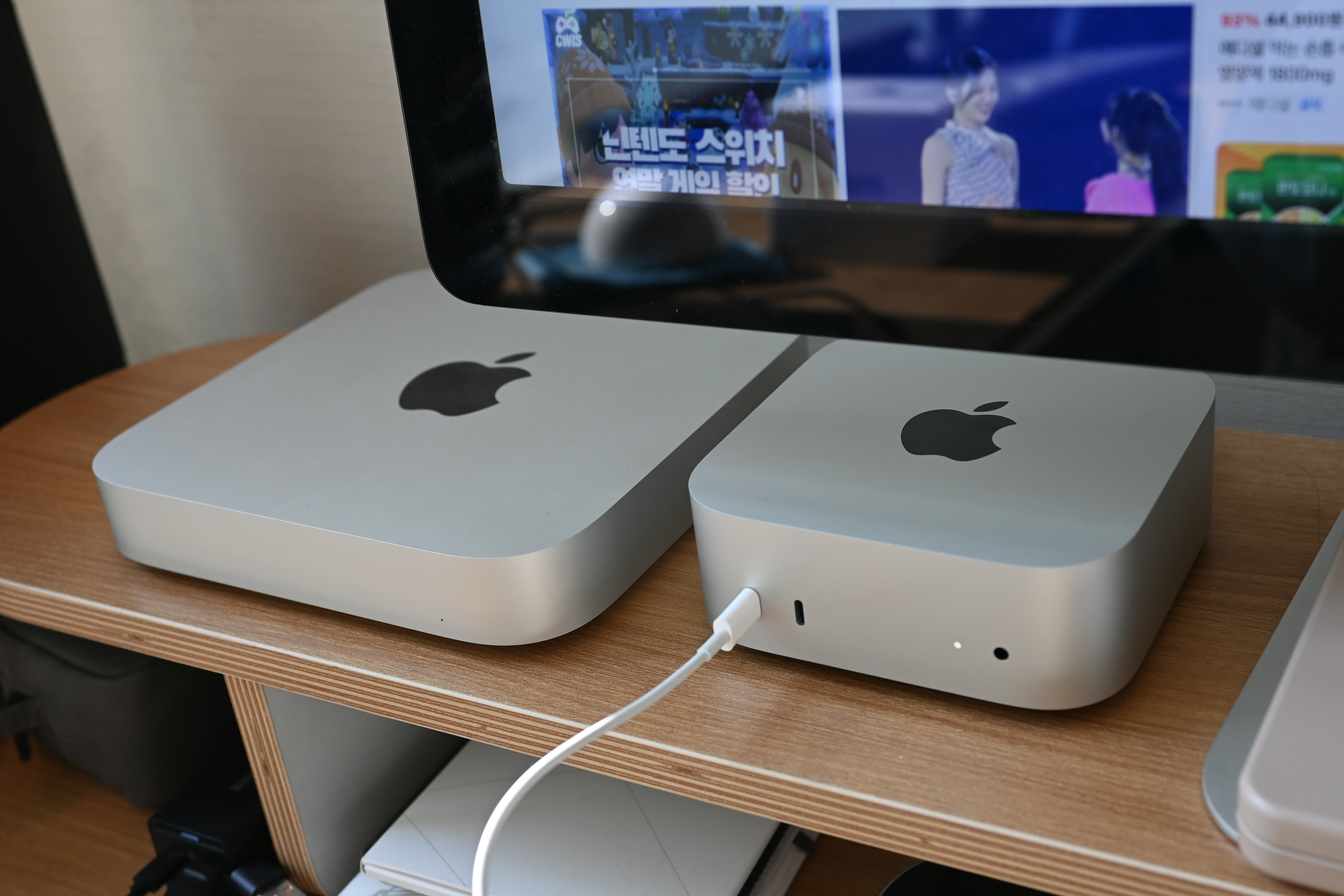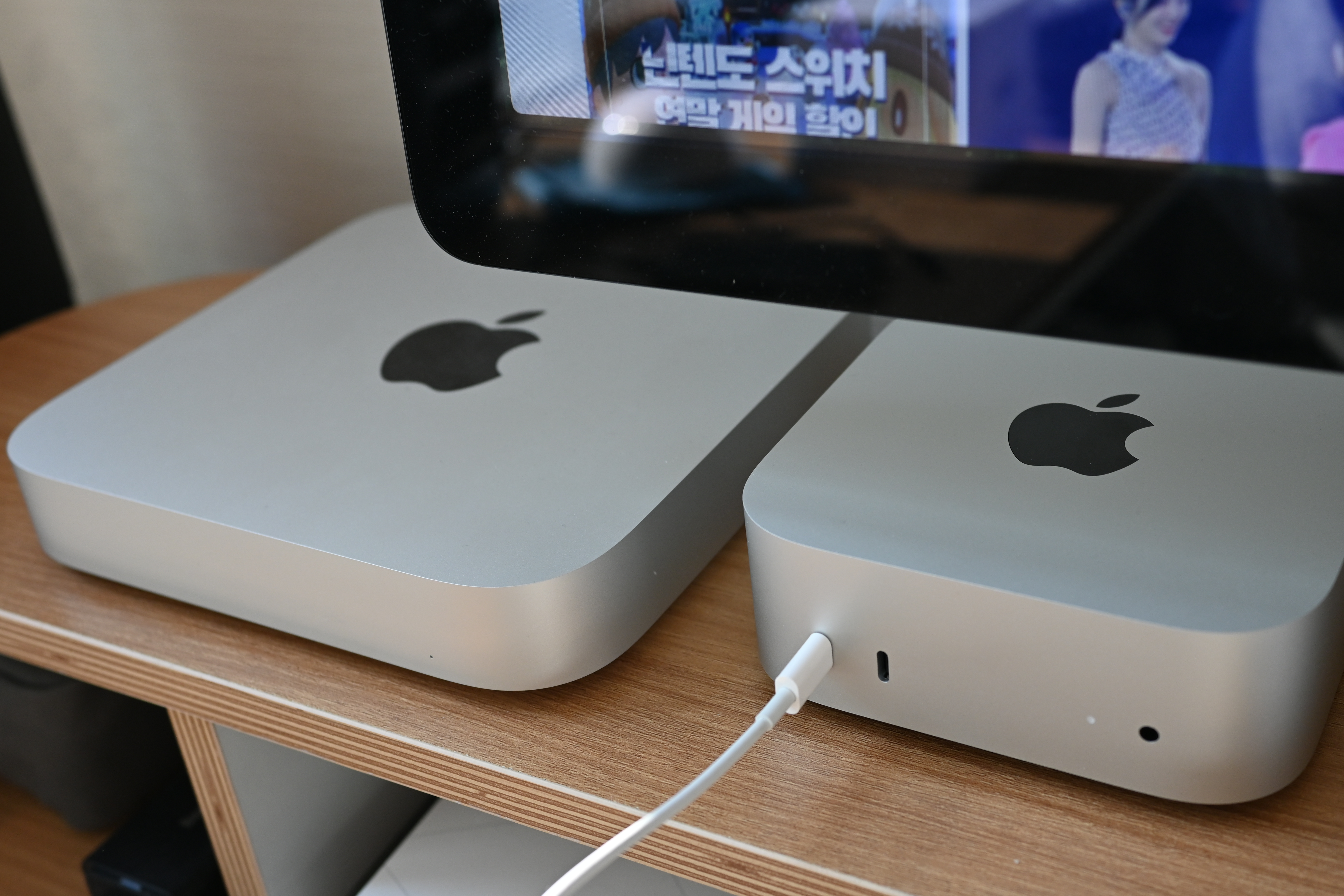 기존에 사용하던 맥미니 m2 모델과의 비교.