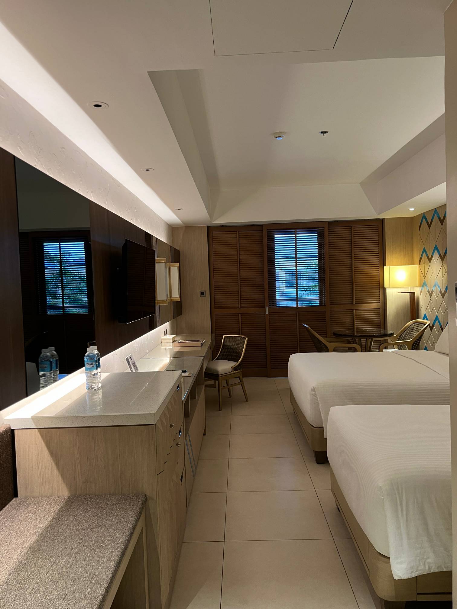헤난 알로나비치는 오션뷰 방이 아니라면 아무런 뷰도 없어서 창밖이 삭막하기만 하고, 오션뷰룸이라고 해도 밤에는 아무 것도 안 보이는데 여기는 밤에도 트로피컬한 수영장에 조명도 예쁘게 켜지고 해서 야경뷰도 오히려 좋은 것 같다. 어차피 타왈라에서도 알로나비치까지 걸어서 5분 정도밖에 안 걸려서 걸어다니기에도 전혀 멀다고 느껴지지 않고, 헤난 알로나비치에 있는 수영장이나 풀바도 이용할 수 있으니 특별히 아쉬운 것도 없다(헤난 타왈라와 알로나비치 이용객은 타월 색상으로 구분하기 때문에 선베드를 이용할 수는 없다).