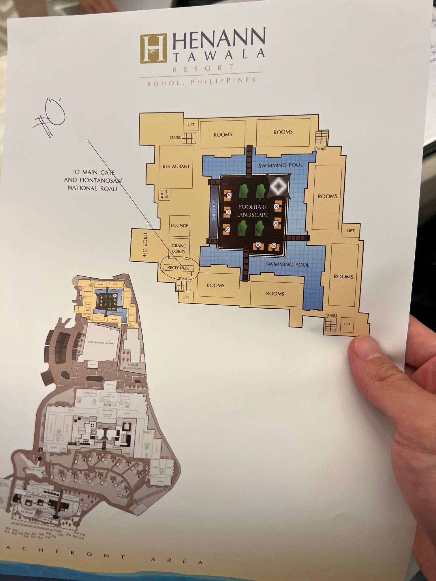헤난 타왈라 리조트 로비에 도착했다.