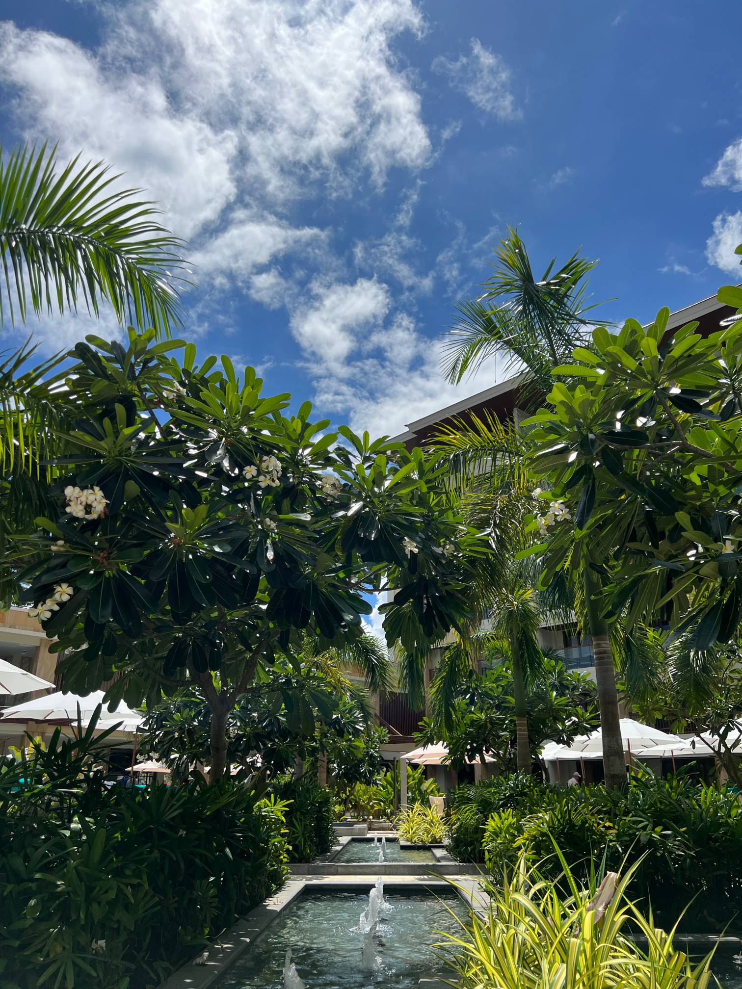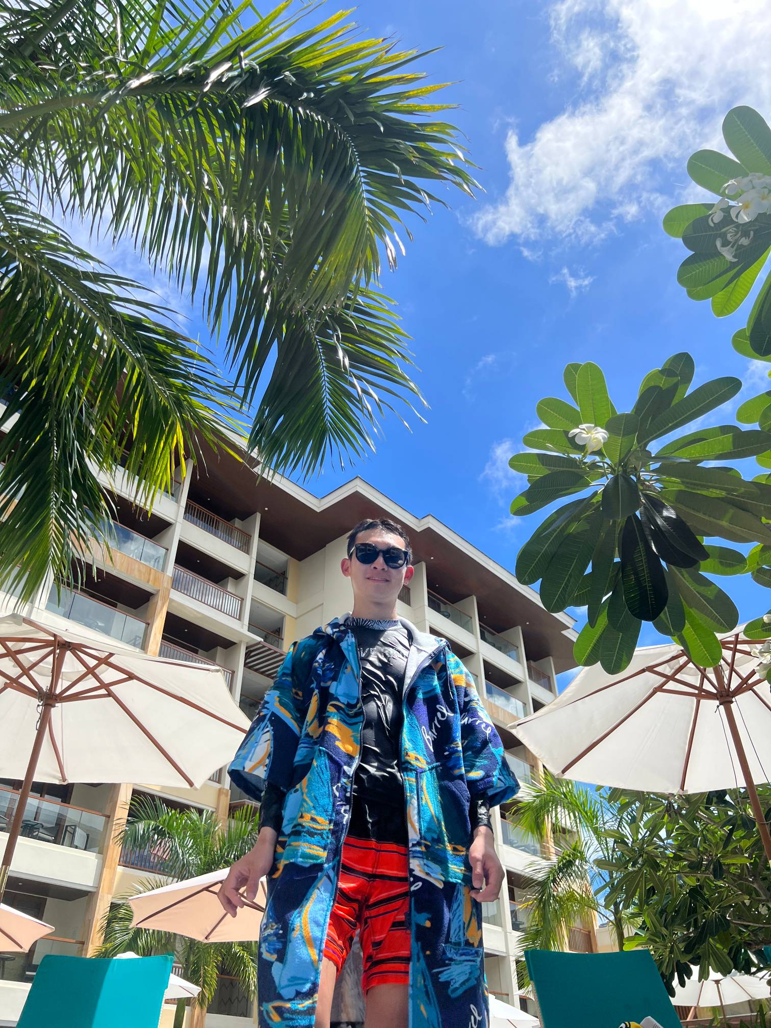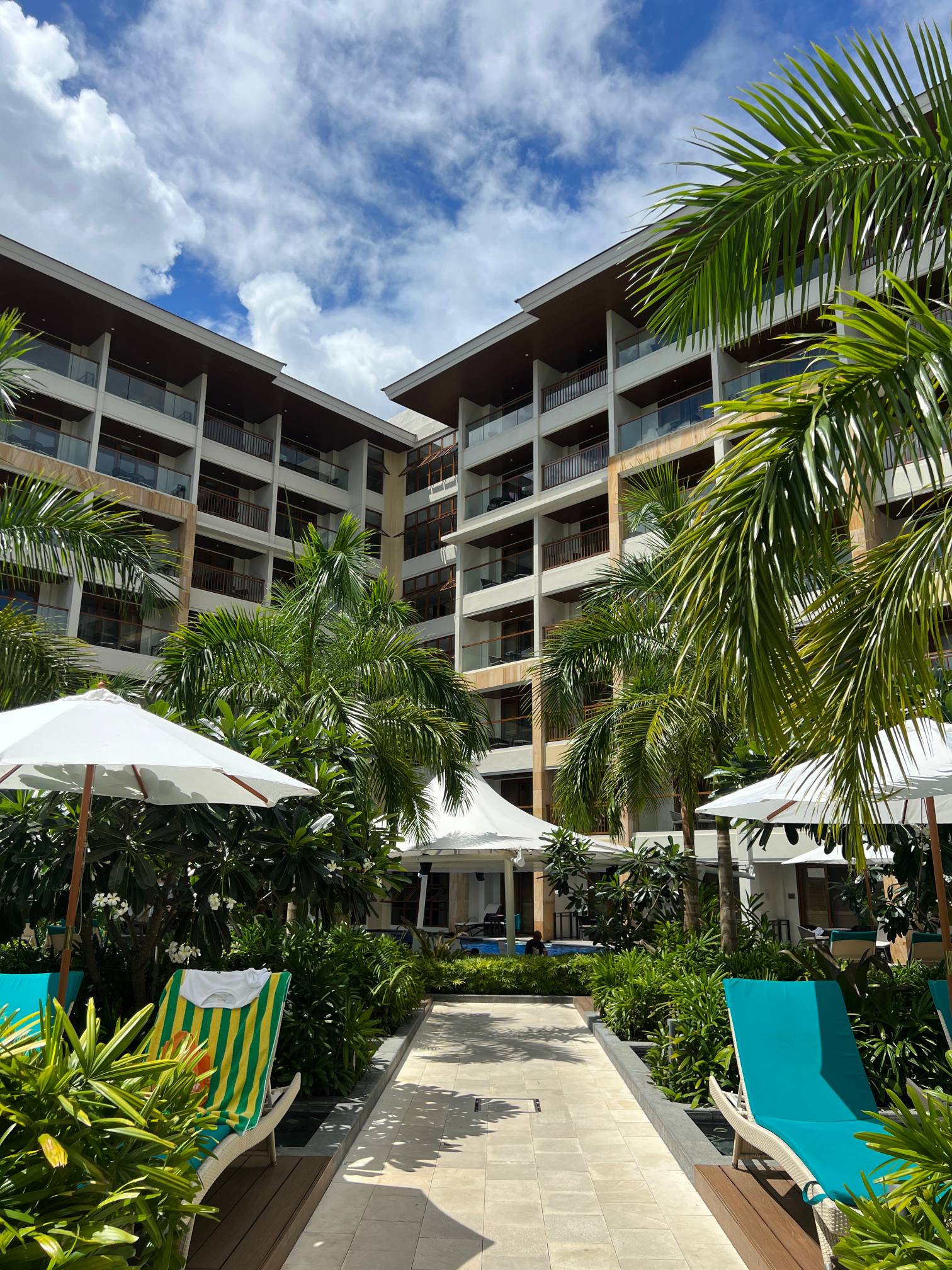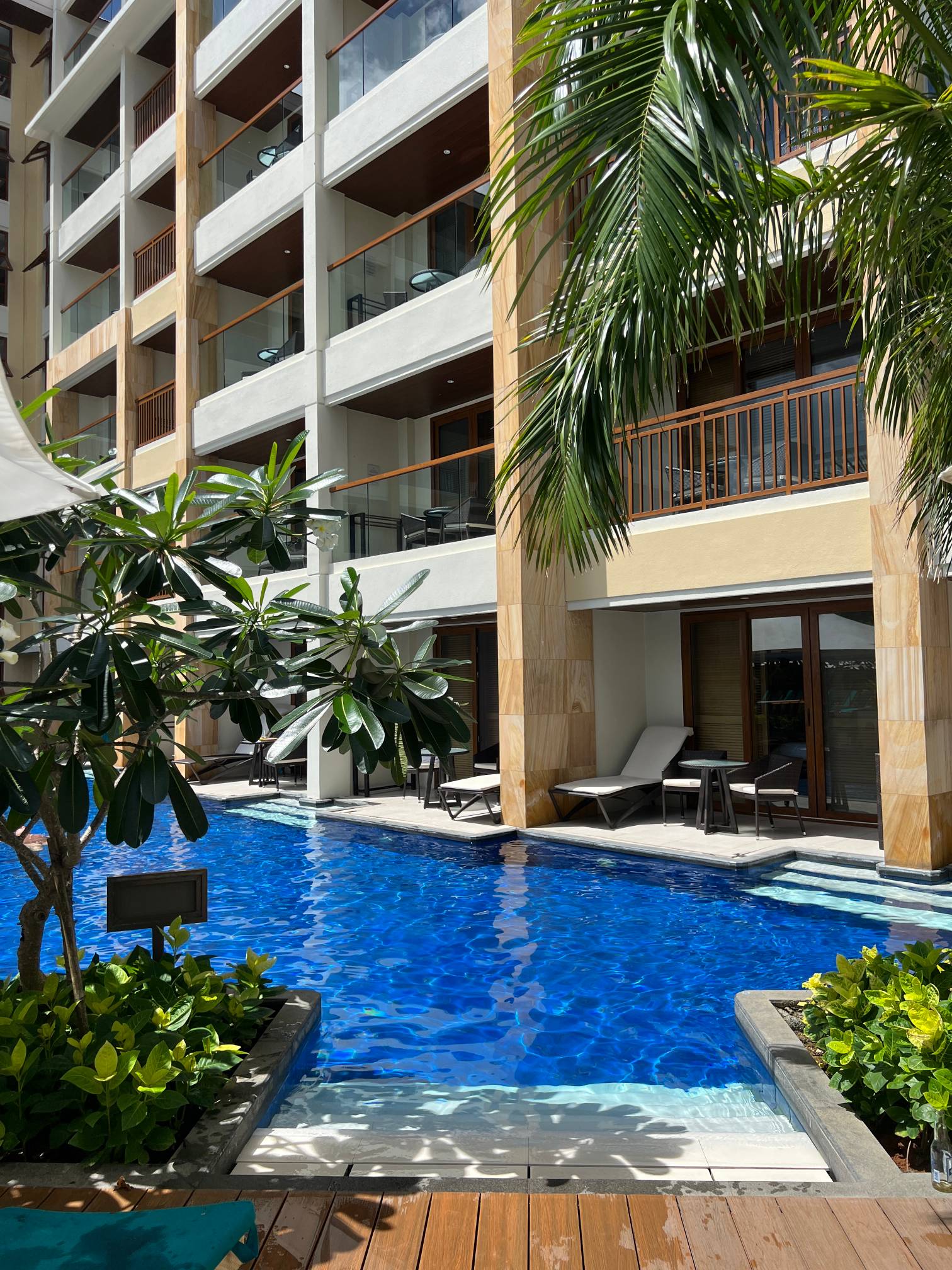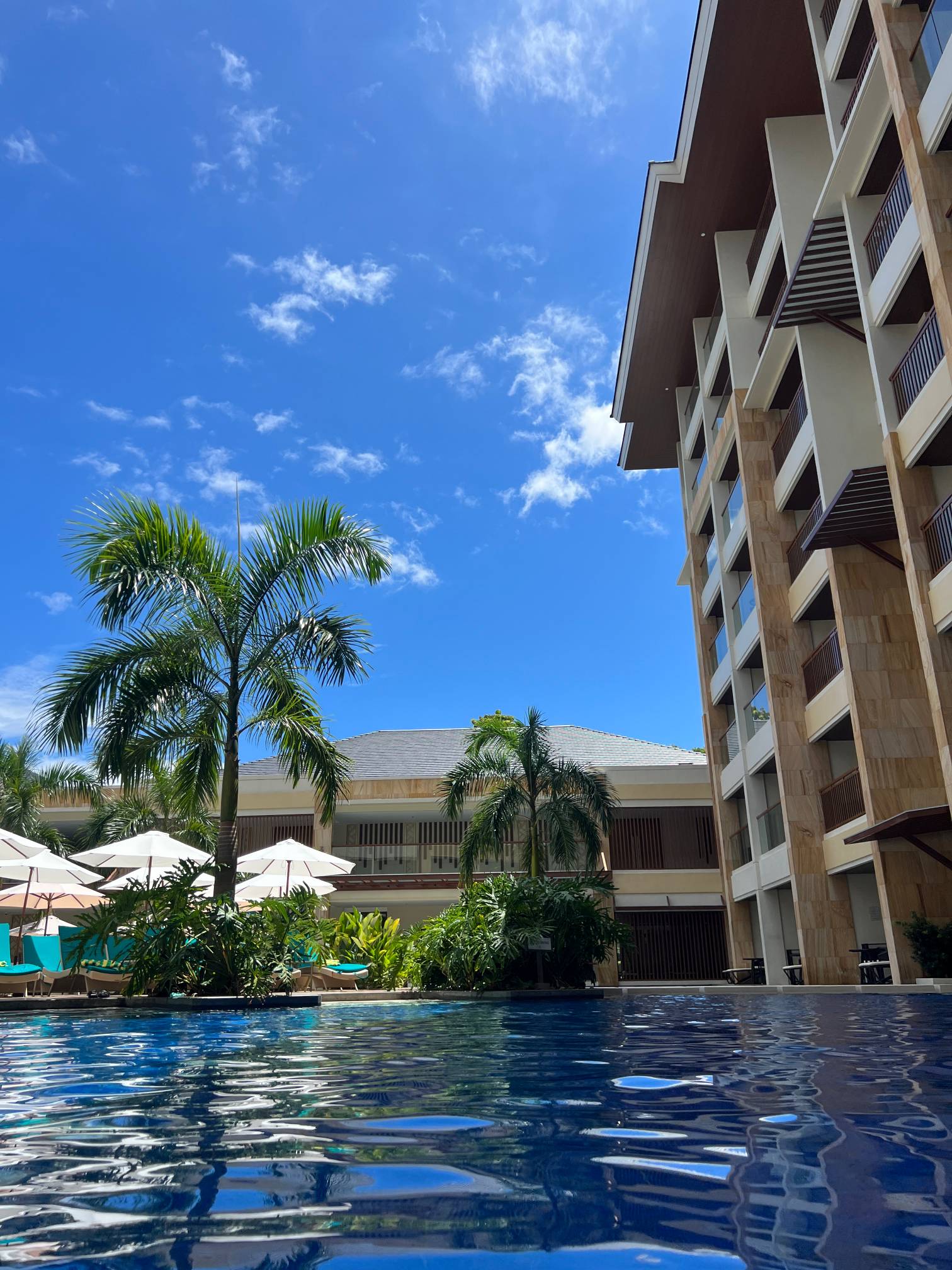 파란 수영장 색과 야자나무, 그리고 바로 앞에 보이는 해변의 풍경이 진짜 환상적일 정도로 아름답다.