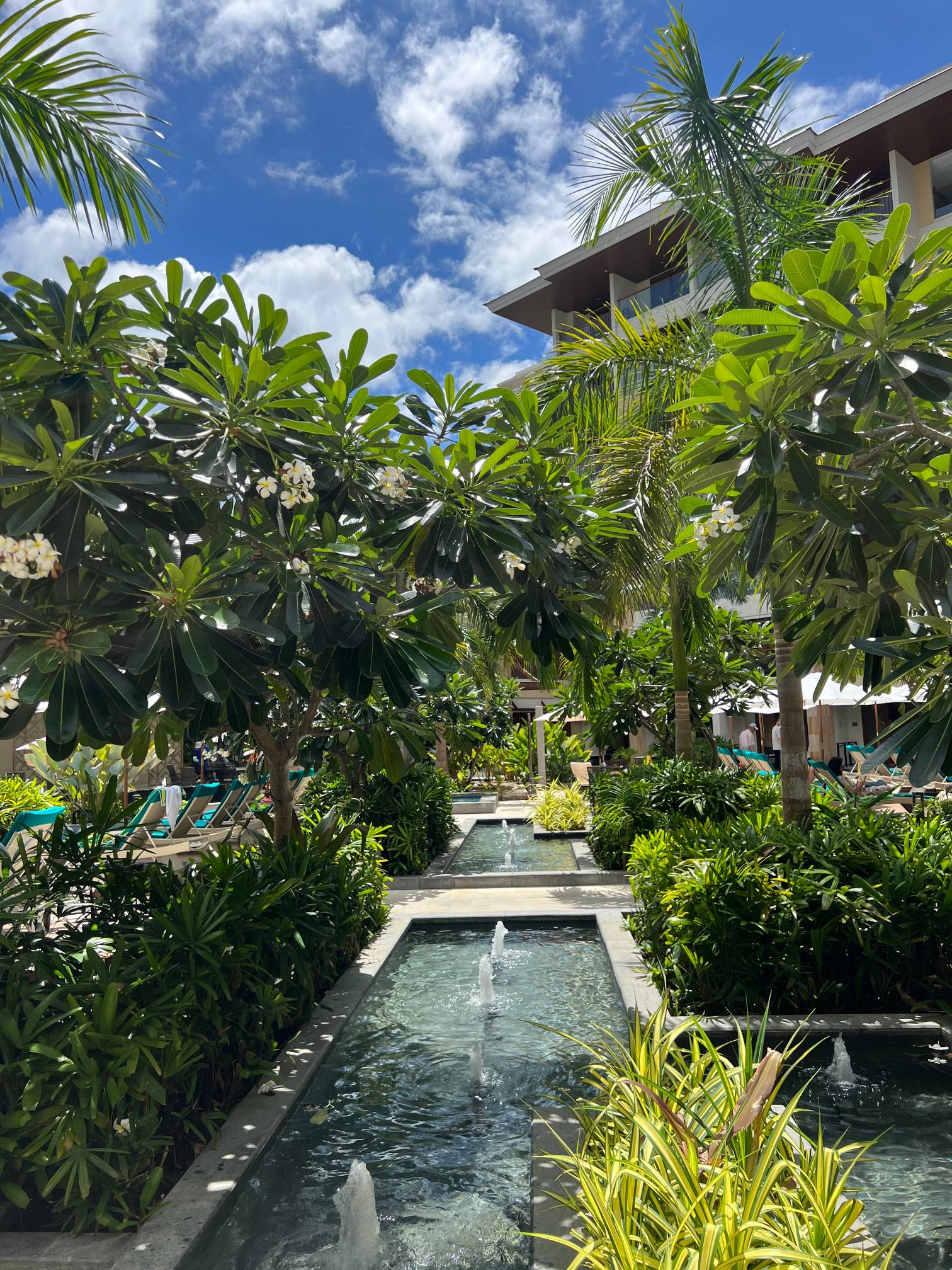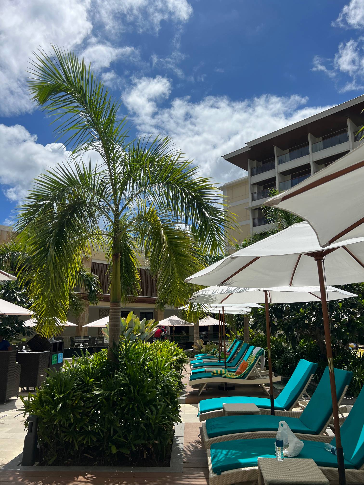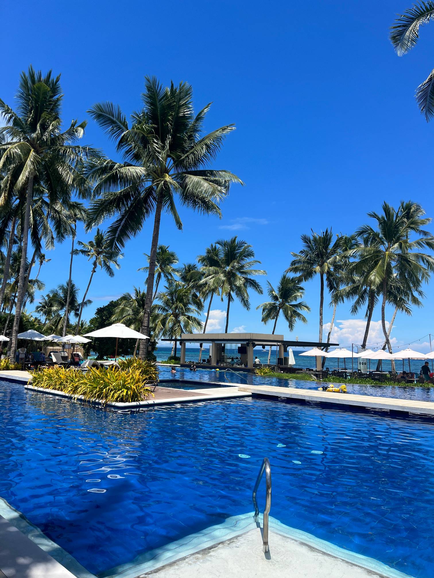 파란 수영장 색과 야자나무, 그리고 바로 앞에 보이는 해변의 풍경이 진짜 환상적일 정도로 아름답다.