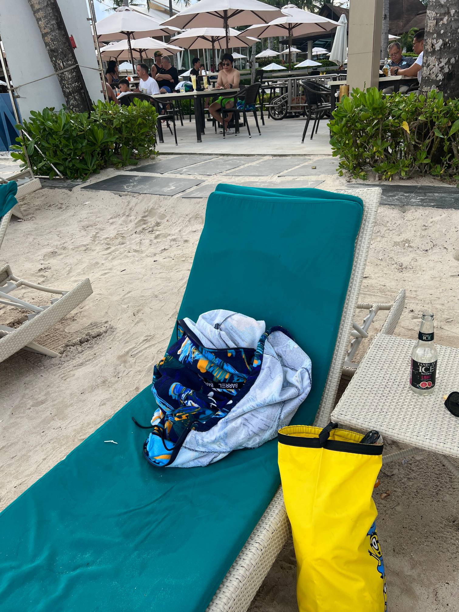 여기 선베드는 헤난 리조트 이용객들만 이용할 수 있는데 수건을 받아서 자리를 맡으면 된다.
