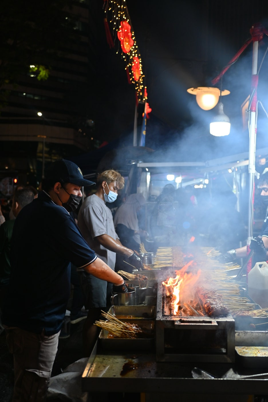 #라우파삿, #사테거리 : ‘라우파삿’은 실내 야시장 같은 느낌이고, 사테거리는 그 바로 옆에 있는 포장마차에서 사테를 팔고 가운데에 있는 테이블에서 먹는 노상 식당 같은 곳이다.