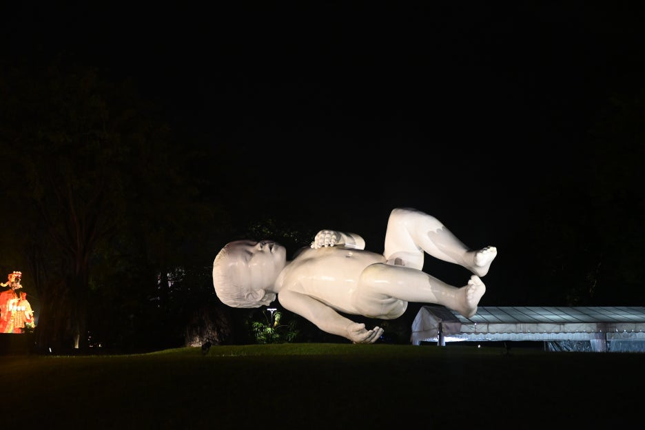 지나는 길에 본 애기 모양 조형물인데, 저렇게 손등 하나로 지탱하고 서있다.