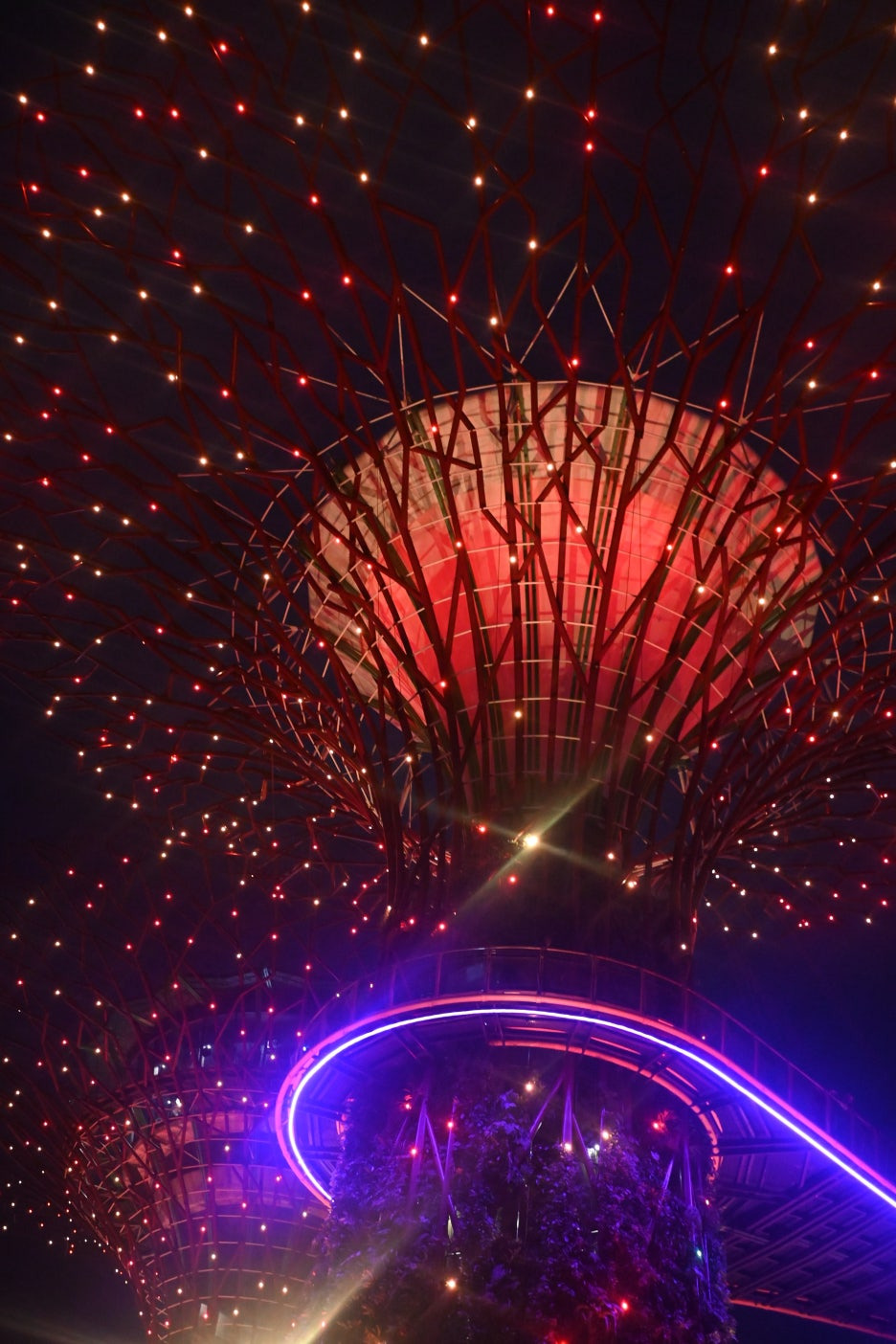 #슈퍼트리그로브 : 호텔에서 조금 쉬다가 슈퍼트리 나이트쇼를 보러 이동. ‘가든스바이더베이’ 공원 입장료 자체는 무료이기 때문에 그냥 공원 산책하다가무료로 관람할 수 있다. 엄청 기대할 정도까지는 아니기는 하지만 공원에 있는 이런 나무로 엄청난 관광객을 끌어들이는 싱가폴의 기획력이 대단하다. 시간은 19시 45분, 20시 45분.