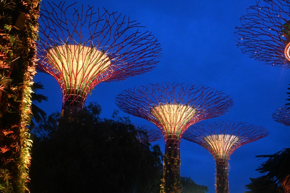 돈을 내면 저 슈퍼트리들을 가로지르는 다리로 올라갈 수 있다.