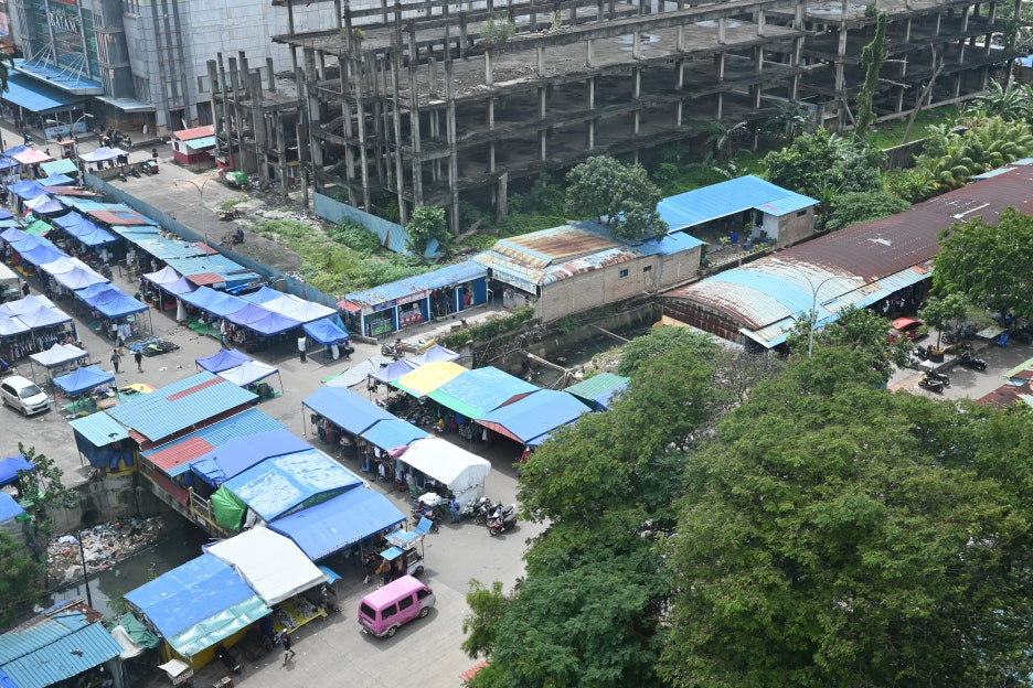 호텔에서 바깥을 내려다봤는데... 뭐 이런 로컬 마을이 있다.