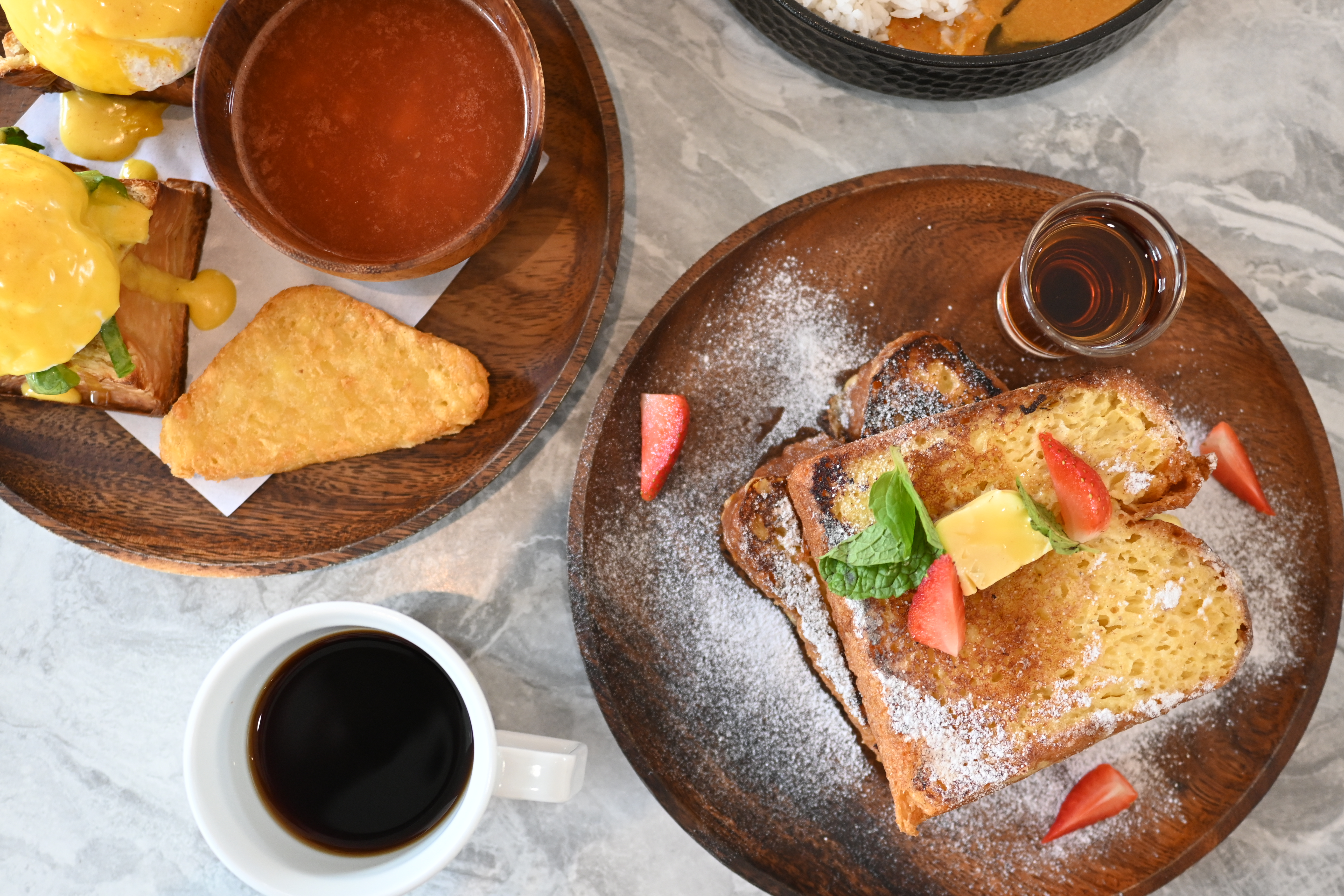저 프렌치 토스트가 너무 맛있어 보여서 하나 시키고 이것저것 시켰다.