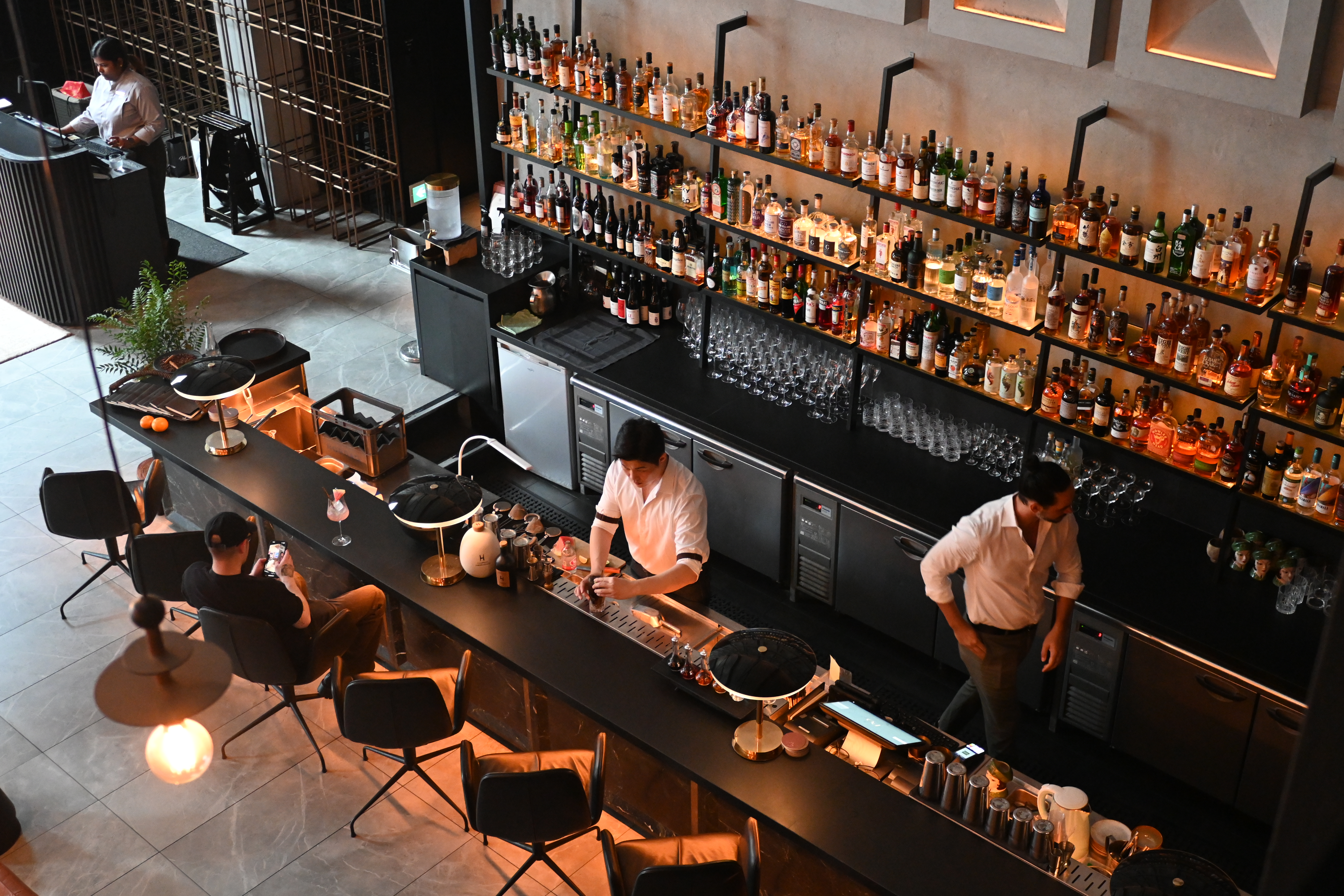 여기가 아래에 있는 바인데, 바테이블에 앉아도 되고 아니면 그냥 편한 소파 자리에 앉아도 된다.