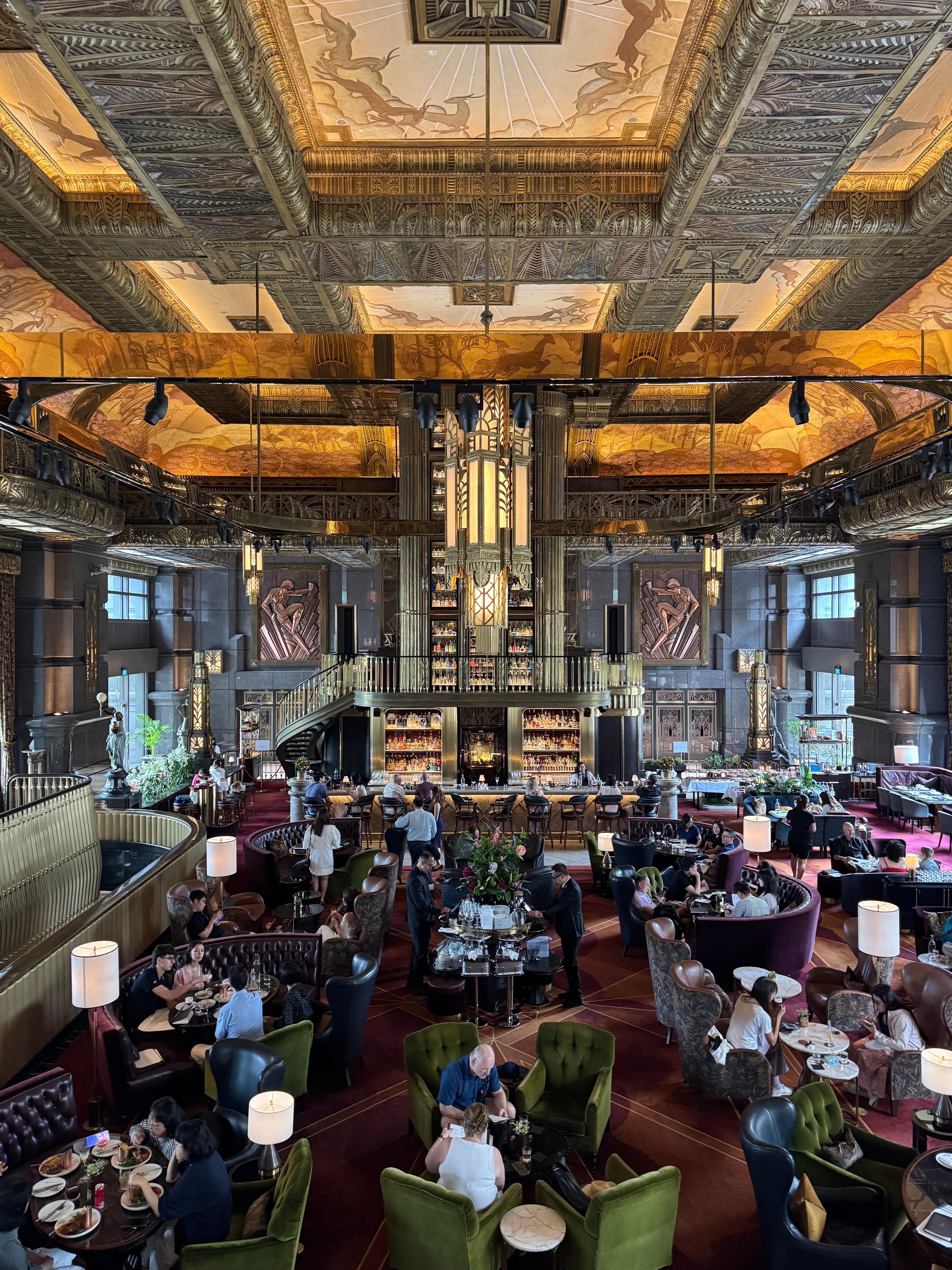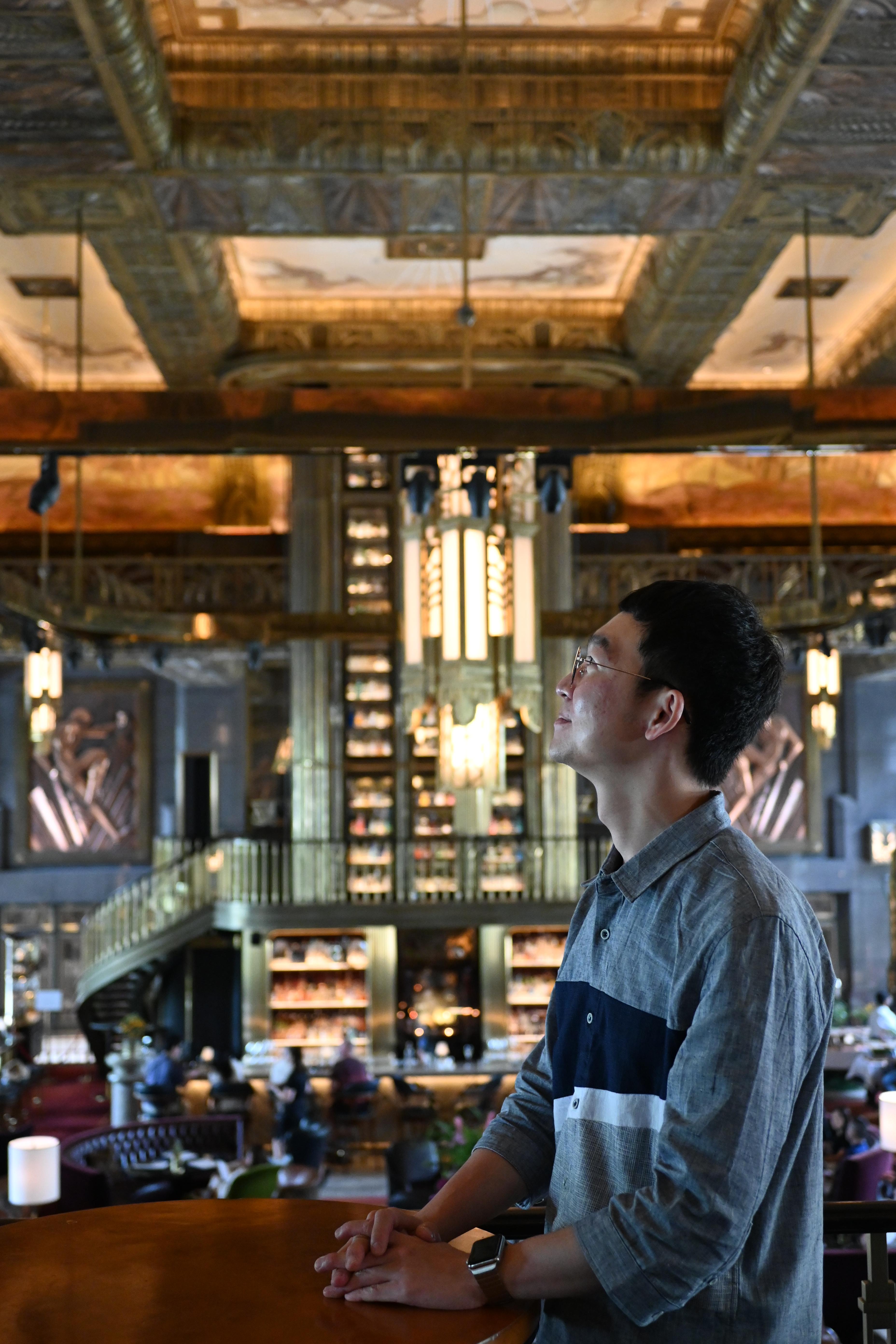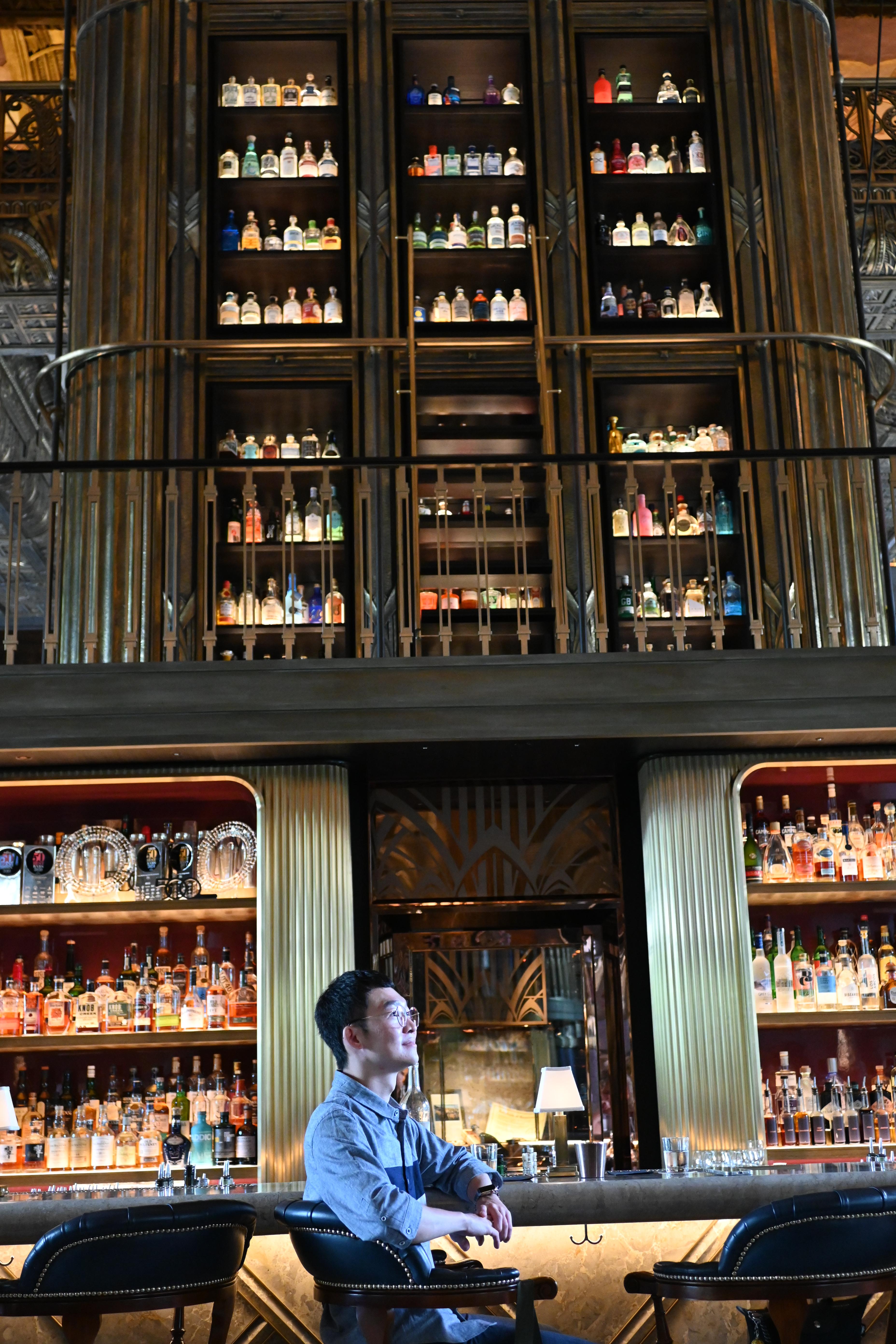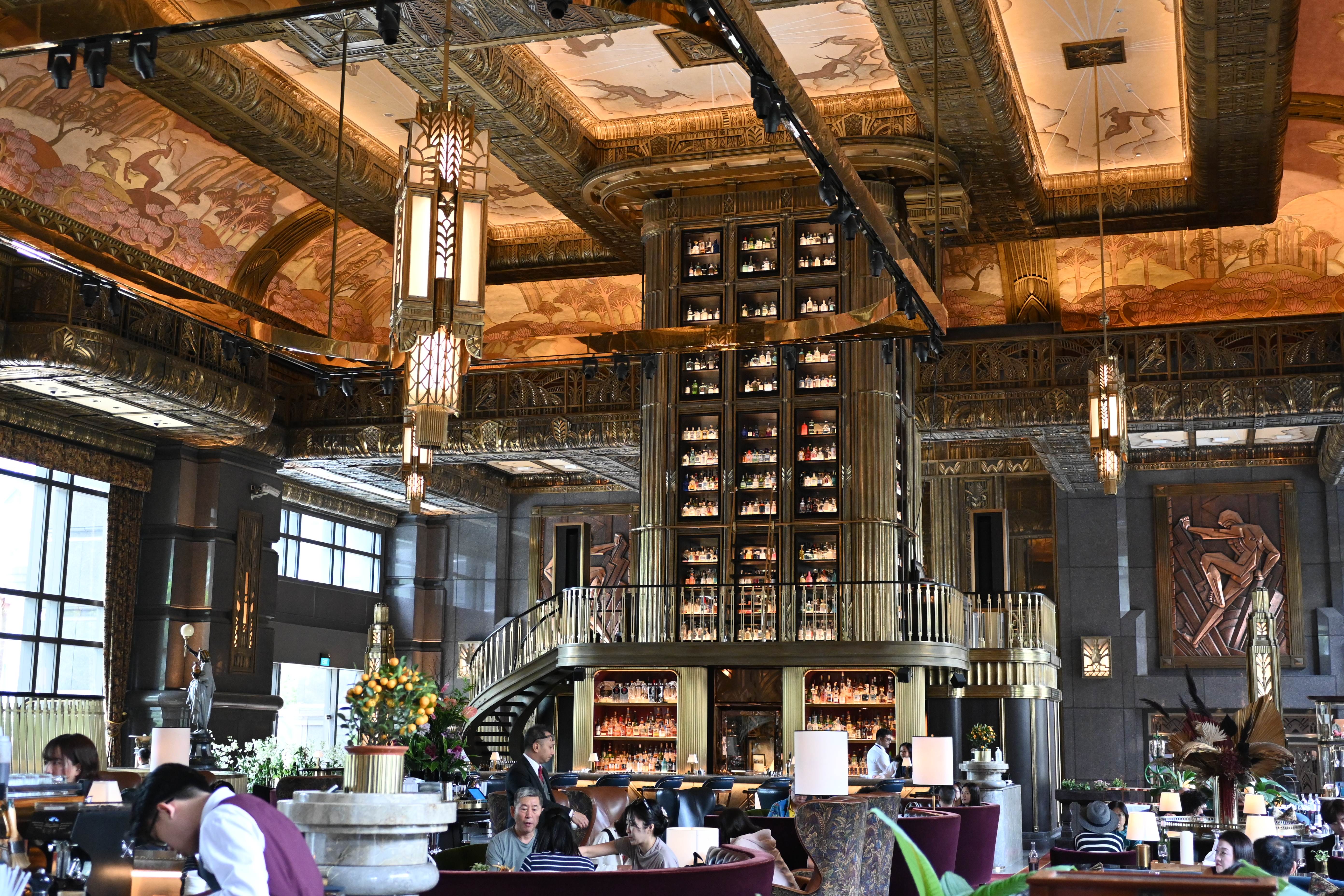1920년대 아르데코 양식(?)이라고 하는데 나는 잘 모르지만 하여튼 고풍스러운 느낌의 인테리어이고, 약 8미터 높이의 세계에서 가장 높다는 진타워가 압도적이다. 이 진타워를 배경으로 사진 찍는 포토존이 있는데 사람 없을 때 후다닥 안 찍으면 줄 서서 기다려야 한다.