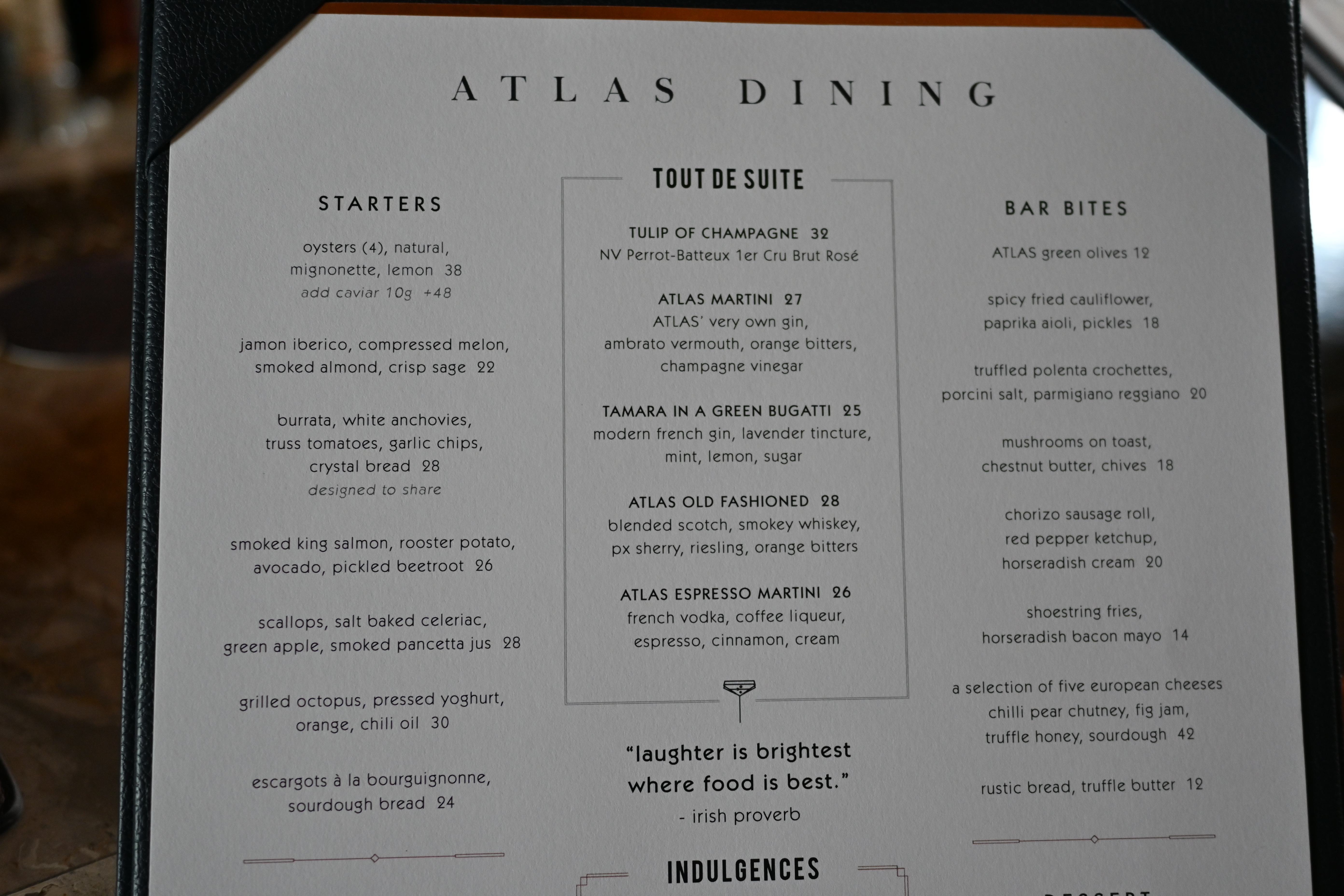 여기 아틀라스바가 세계 50대 바에 선정된 곳이라고 하기도 하고 실내 인테리어가 우리나라에서는 볼 수 없는 웅장한 곳이라 아침에 눈 뜨자마자 방문. 예약을 안 하면 못 들어가는 곳이라 오픈런 하는 게 좋은 것 같다.