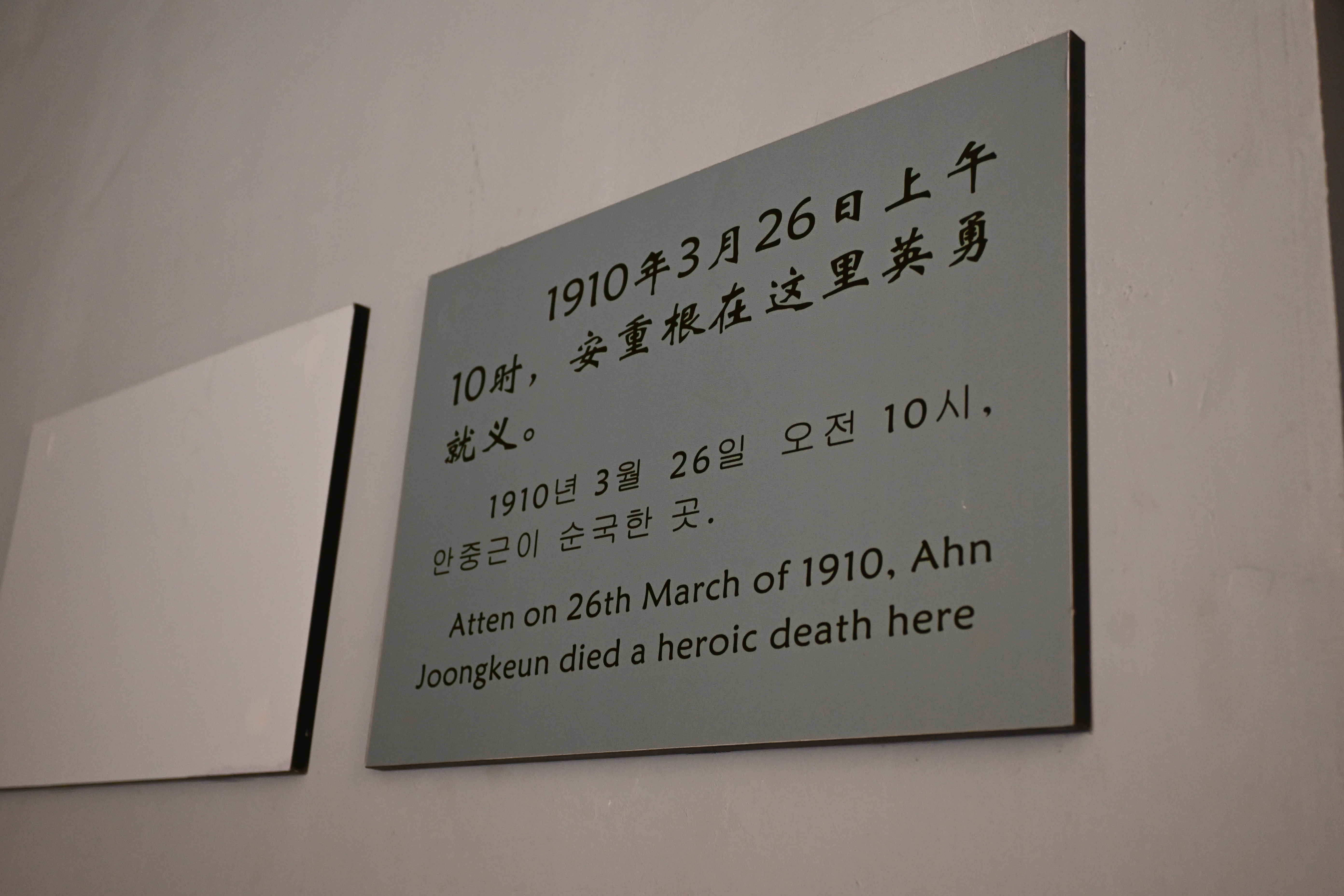실제로 안중근 의사가 수감되었던 독방과 사형이 집행된 장소가 그대로 보존되어 있는데, 안중근 의사는 우리나라 입장에서도 독립영웅이지만 중국에서도 항일영웅으로 존경한다고 한다.
