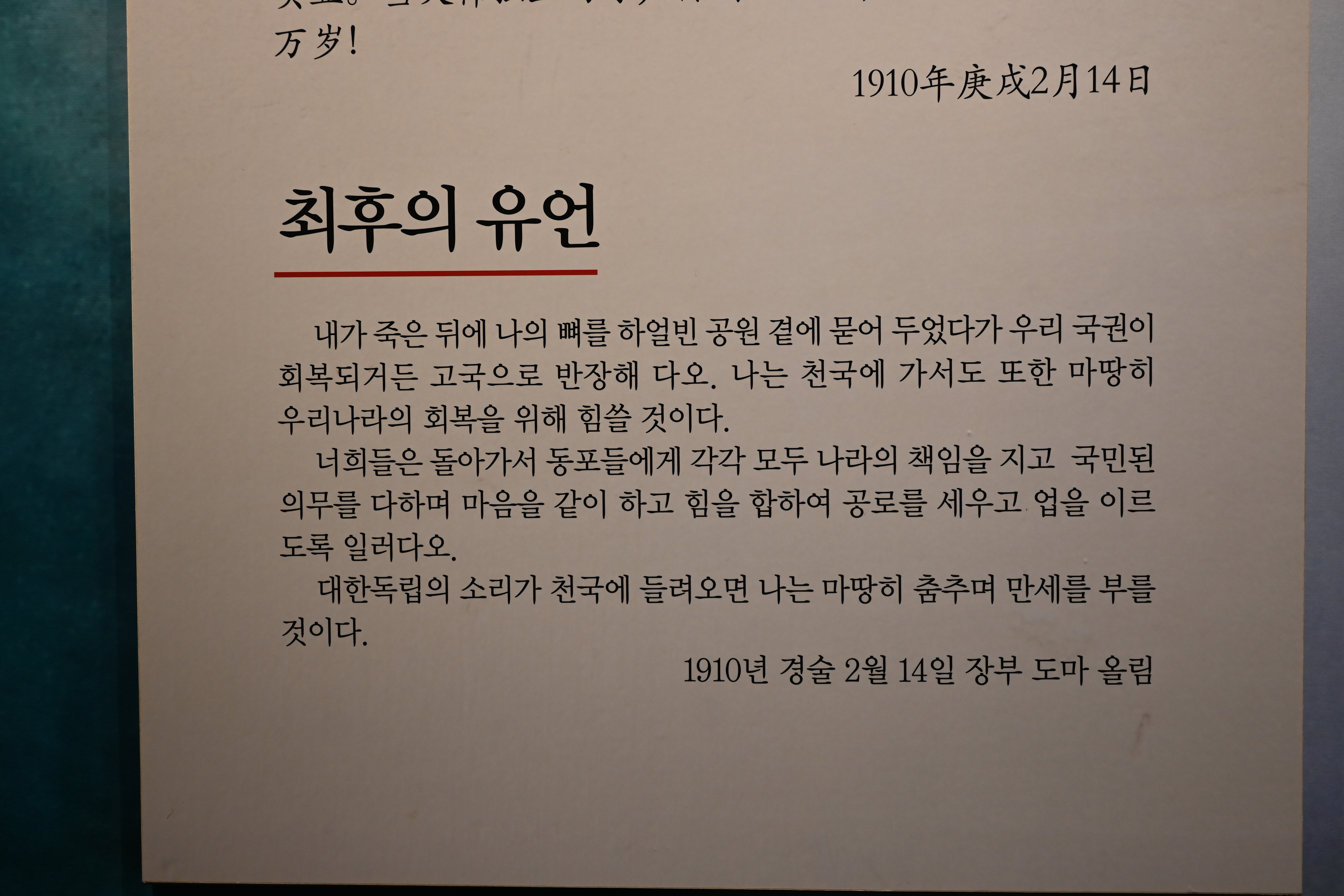 안중근 의사는 중국에서도 항일 영웅으로 존경하는 인물이라고 한다. 이렇게 안중근 의사가 머물렀던 공간들이 잘 보존되어 있어서 다행이다.