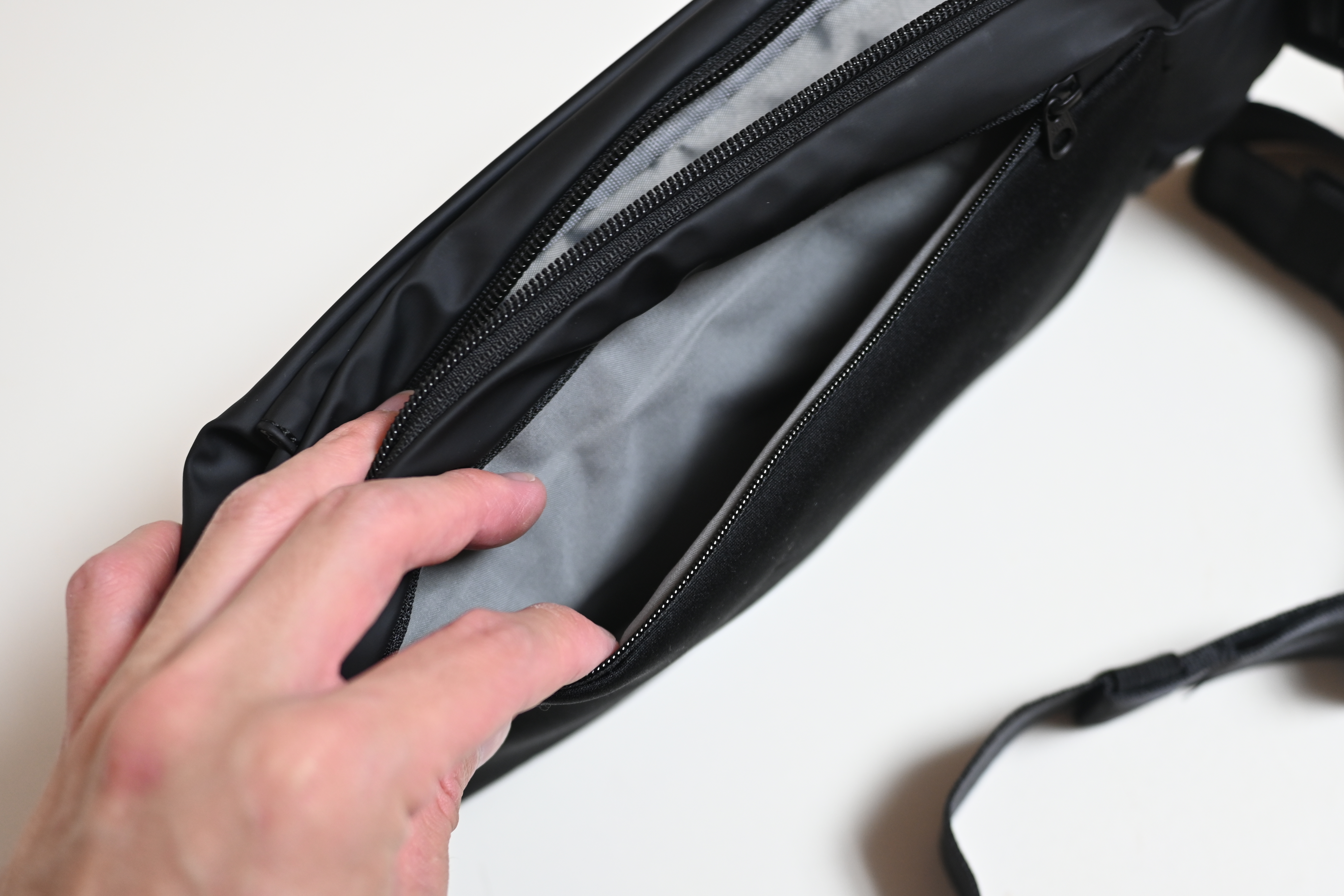 여기는 메인 주머니인데 이번에 같이 구매한 샤오미 셀카봉이 쏙 들어가는 크기이고, 작은 우산도 한번에 넣어서 다닐 수 있다.