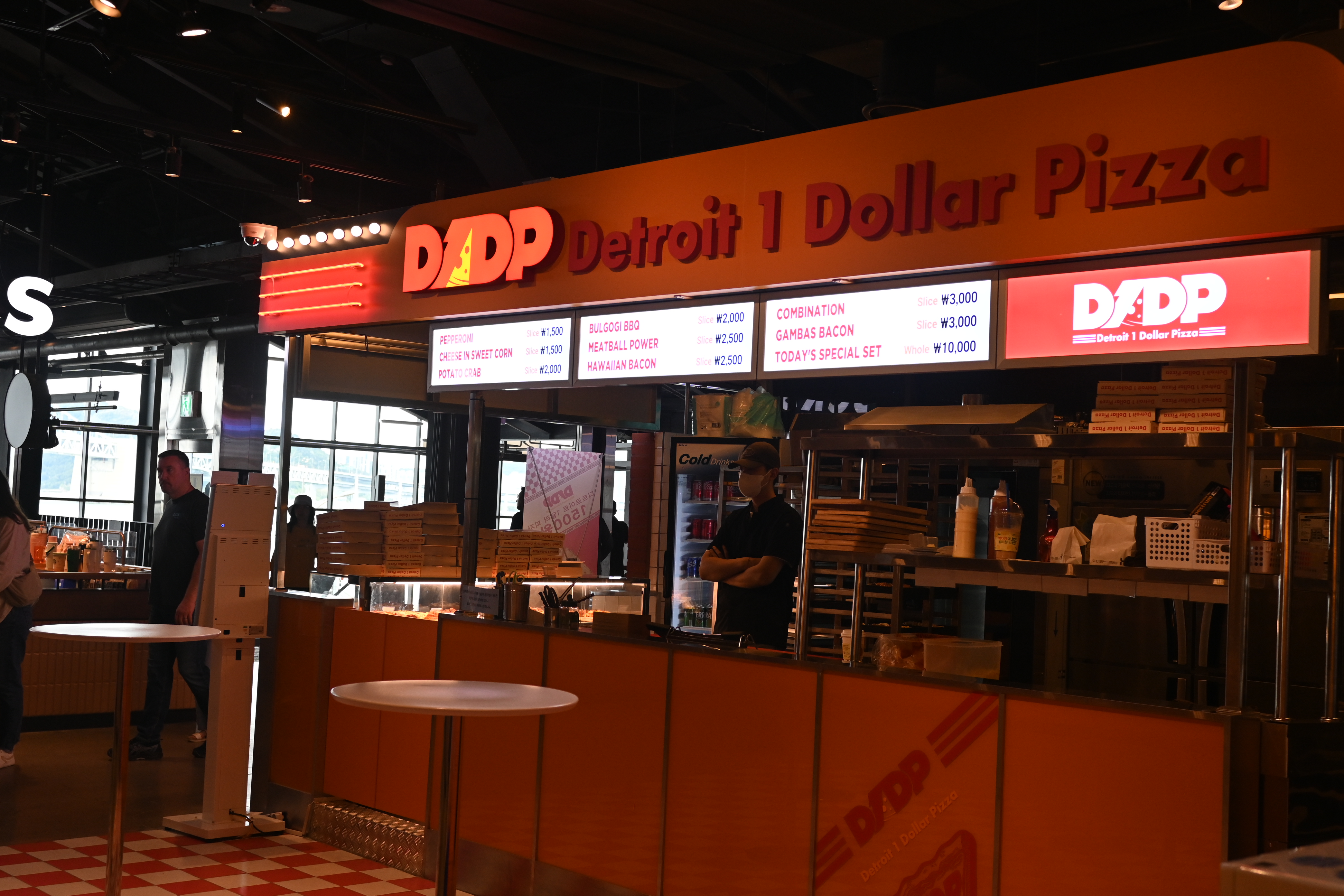 여기 디트로이트 1달러 피자가 성수동에서는 진심 줄 서서 먹어야 하는 곳인데 여기는 사람이 없다.