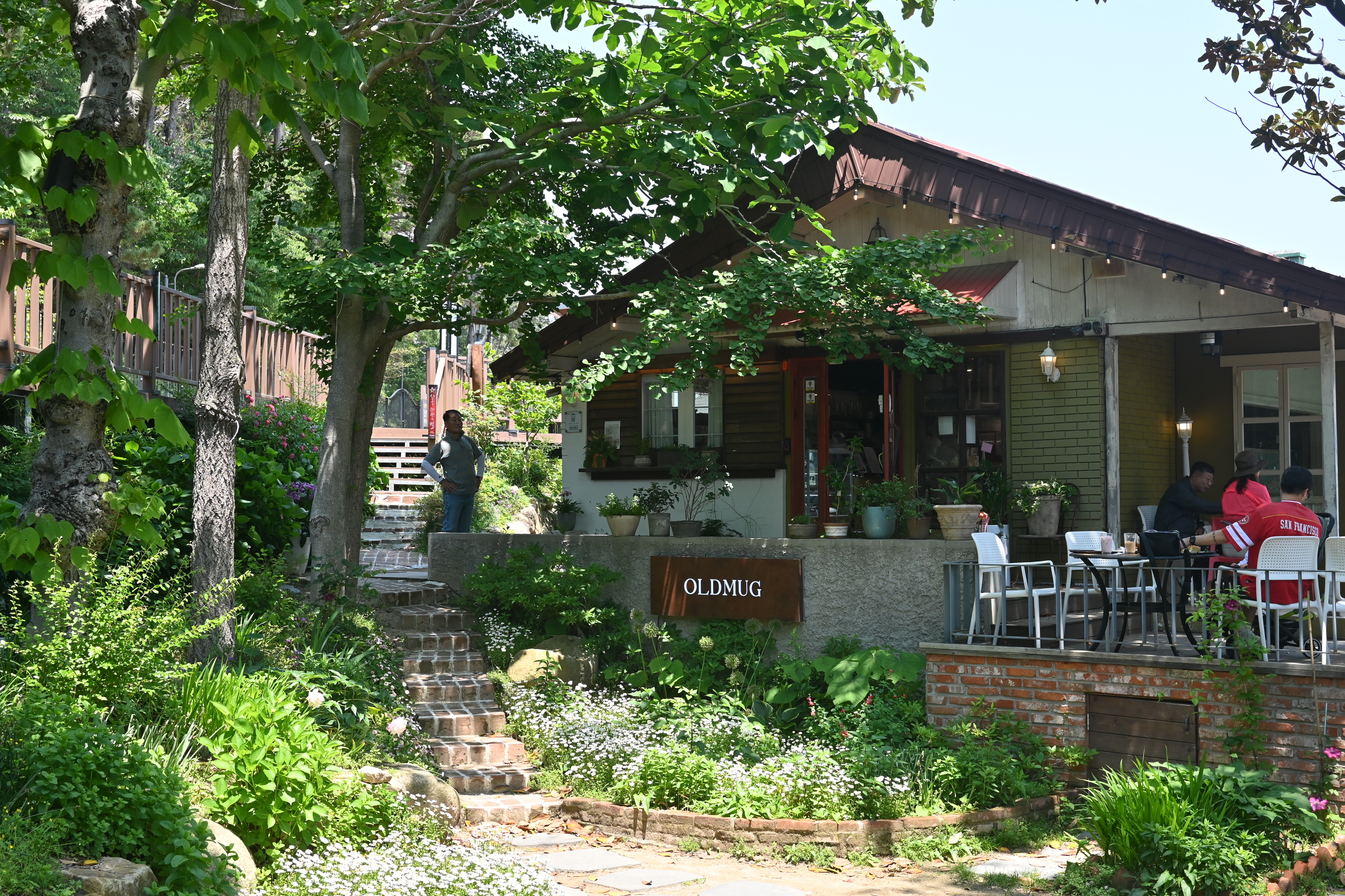 구덕포 즈음에 오면 웬 숲속에 있는 요정의 집 같은 카페가 하나 나오는데, '올드머그'라는 곳이다.