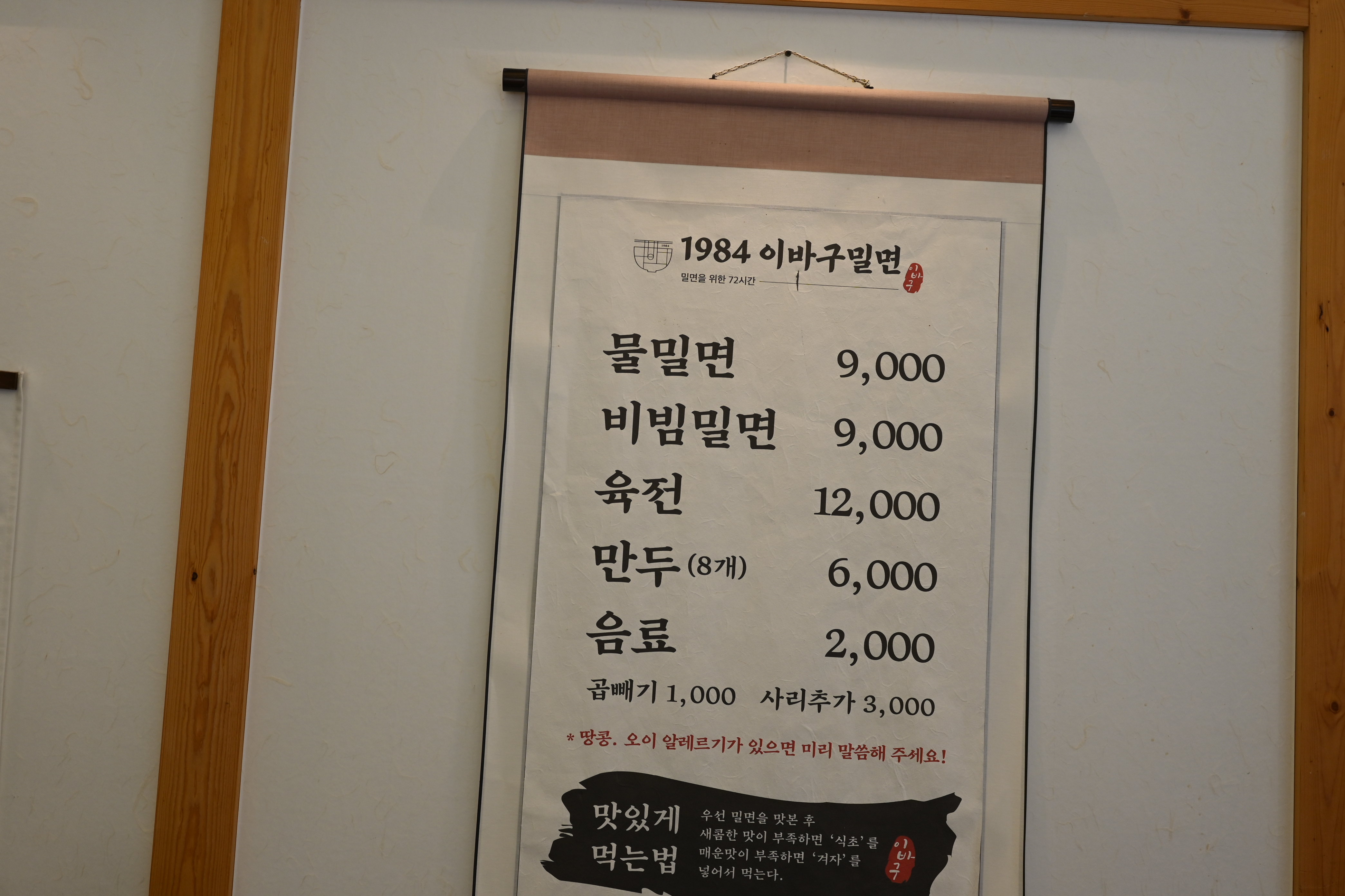 밀면 한 그릇도 9,000원이면 상당히 저렴하다.