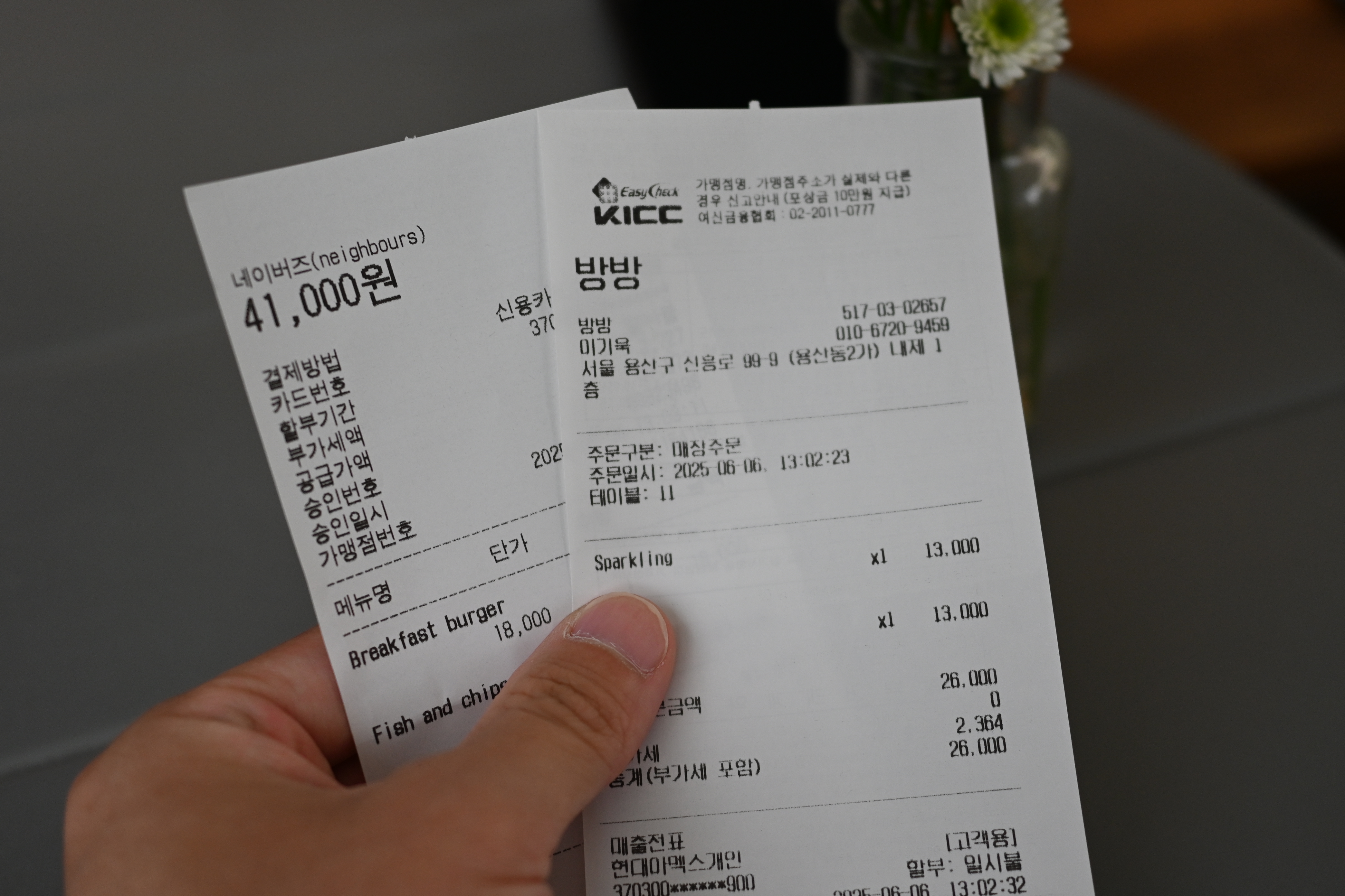 음식 2개, 와인 두잔 해서 한 7만원 정도 나옴.