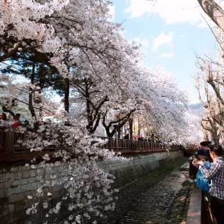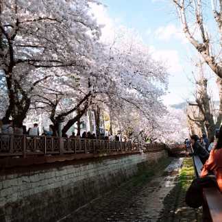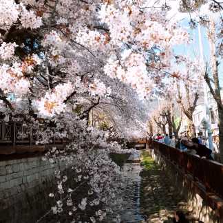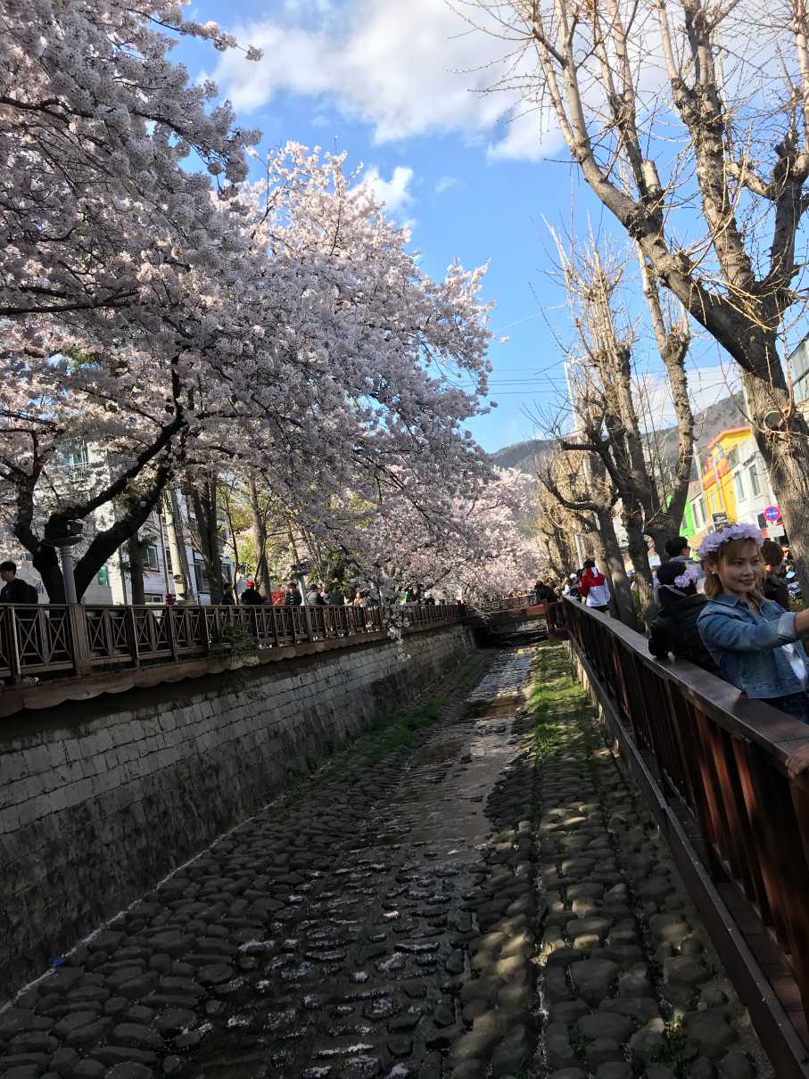 암틍 이런 식으로 천을 따라서 쭉 ~~ 피어 있는 벚꽃들 사이에서 사진을 찍을 수 있습니다.