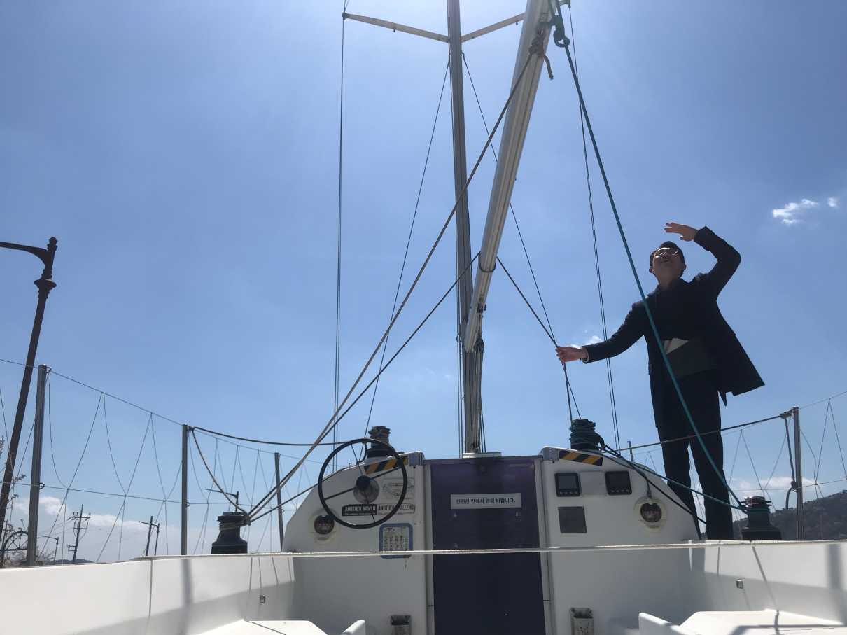 진해에 무슨 요트 선착장이 있는데 ... 이걸 탄 건 아니지만 그냥 기분이라도 내보려고 배에 탄 척. 원래는 이 요트 체험하는 프로그램? 같은 게 있어서 이걸 타려고 했는데 이날 바람이 너무 세서 배가 못 뜬다고 하더라구요. 실제로도 머리가 다 헝클어질 정도로 바람이 많이 불기는 했는데 아쉬움이 남지만 어쩔 수 없이 진해 군항제 구경이나 하기로.