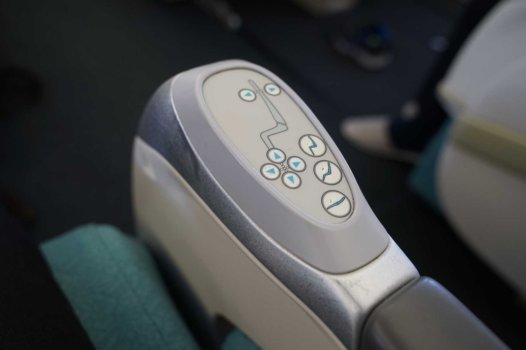 대한항공 a380 프레스티지석은 좌석이 풀플랫으로 눕혀집니다. 저 손잡이에 있는 리모컨으로 등받이나 다리 받침대를 원하는 높이와 각도로 다 조절할 수 있고, 맨 아래에 있는 버튼을 누르면 180도로 누워집니다.