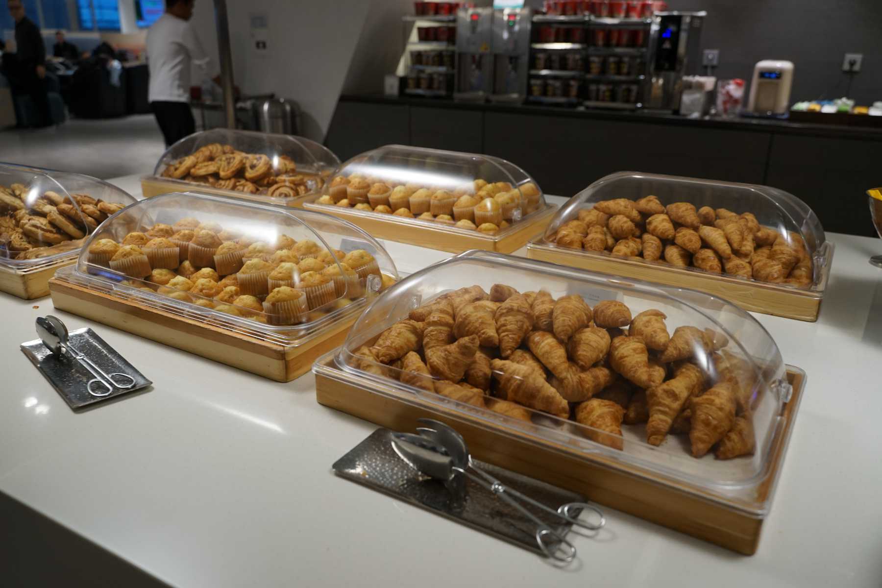 빵인데 ... 뭐 사실 종류가 그리 많진 않아요. 저렇게 크로와상이랑, 쿠키, 머핀이 전부였던 걸로 기억합니다. 맞은편은 똑같은 걸 그냥 페어로 둔 거라서 종류가 상당히 적은 게 좀 아쉽습니다.