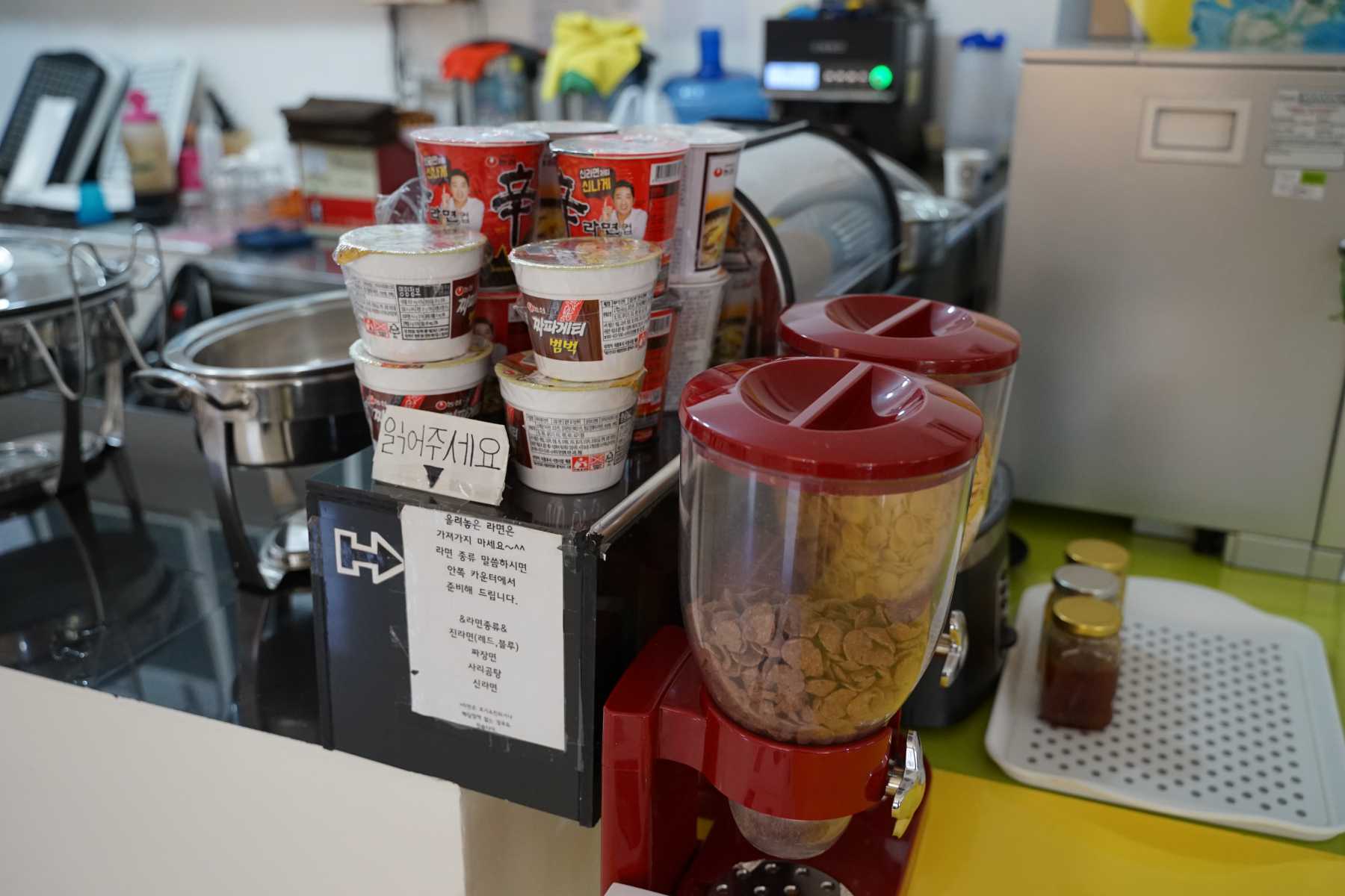 안에는 저렇게 뭐 음식이나 음료들을 주문할 수 있습니다. 저는 샌딩 업체에서 서비스로 아이스커피 하나를 주셨네요.