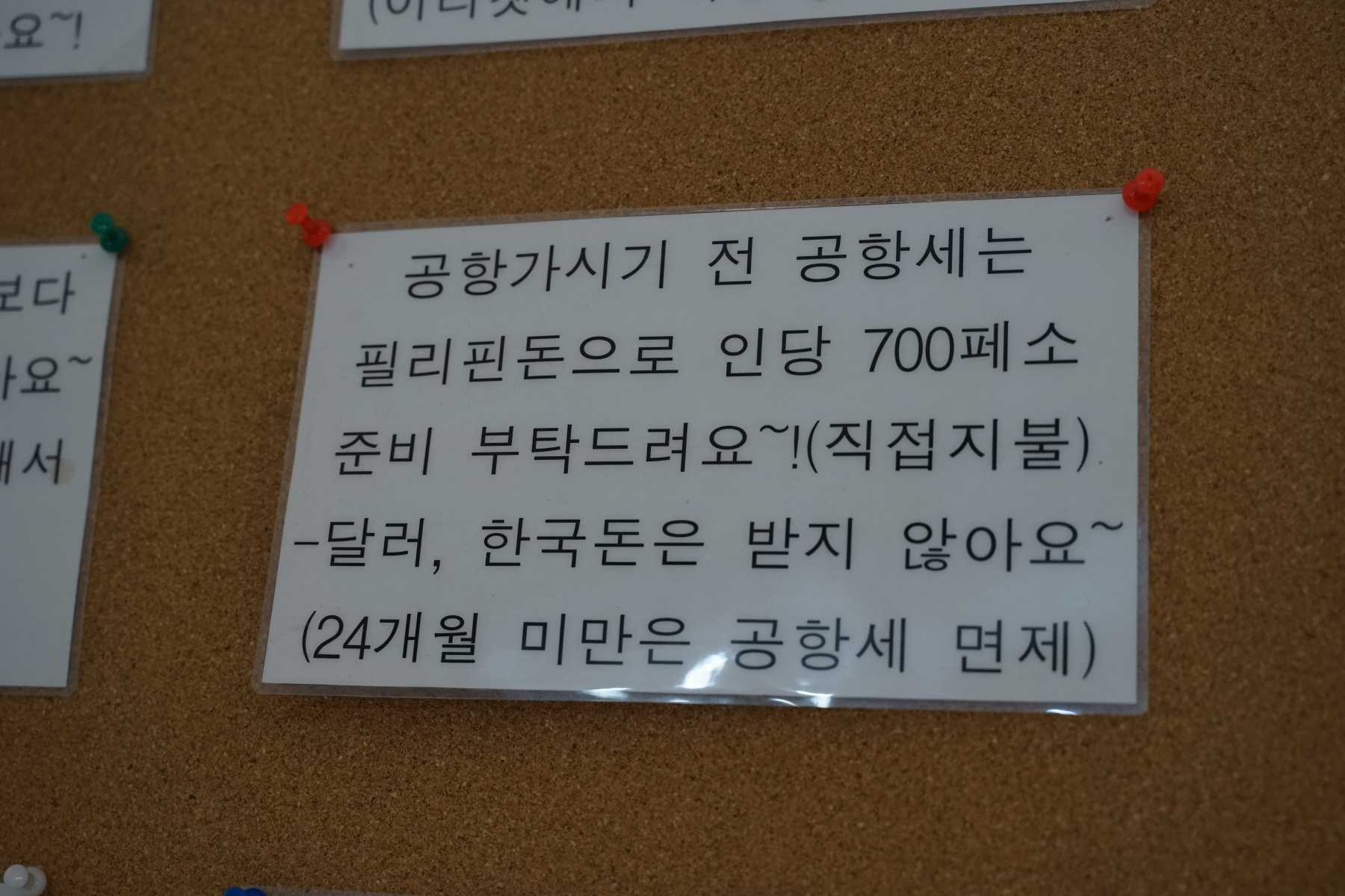 이게 좀 중요한데 나중에 칼리보 공항에서 출국할 때 공항세 700페소를 꼭 페소로 지불하셔야 합니다. 그러니 보라카이에서 돈을 쓰더라도 공항세 지불할 700페소는 꼭 남겨서 오셔야 합니다.