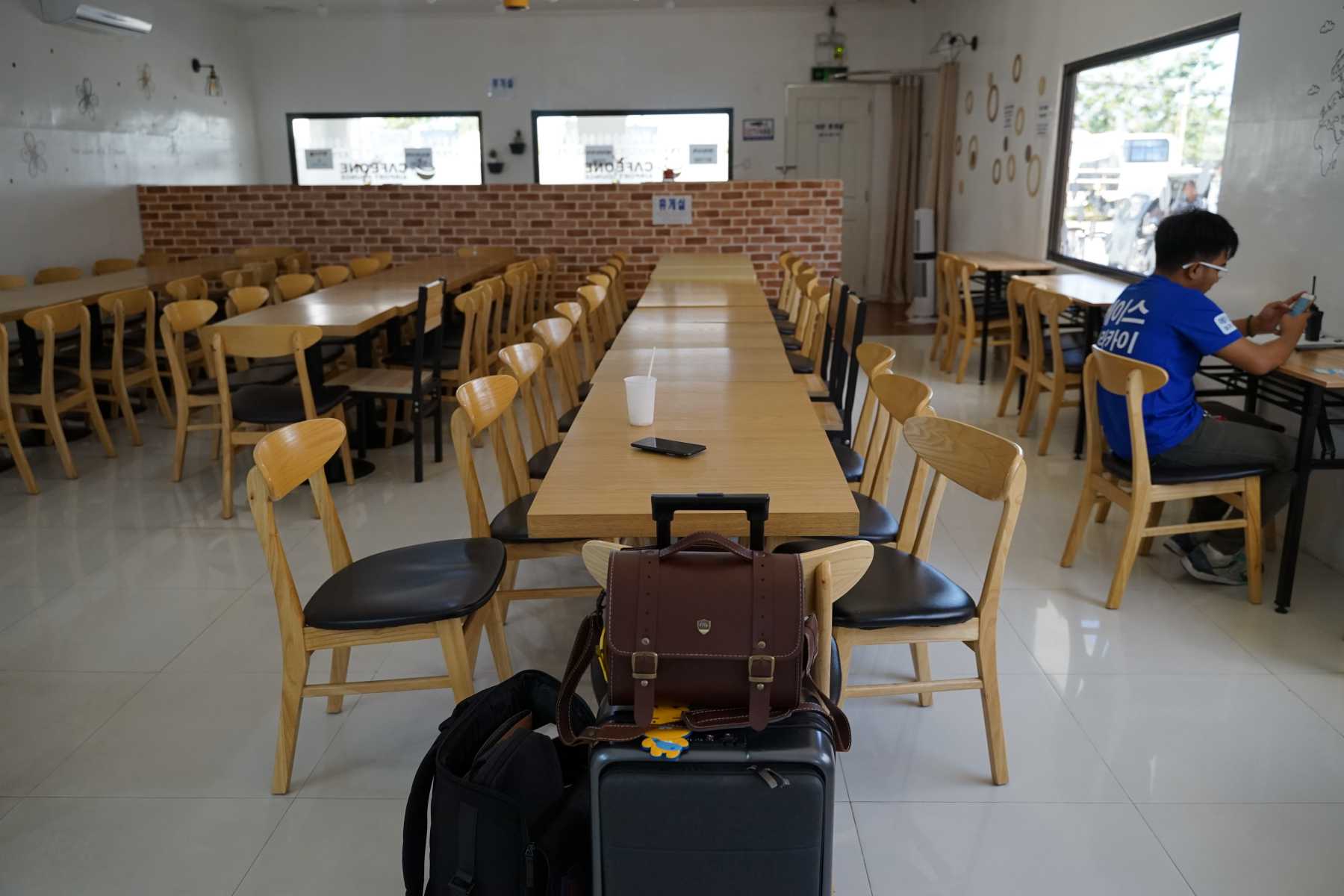 여기가 모이는 장소. 카페원이라는 곳인데, 여기에 다 모여서 출발하더라고요. 카페이면서 동시에 공항 라운지로서의 기능을 합니다.